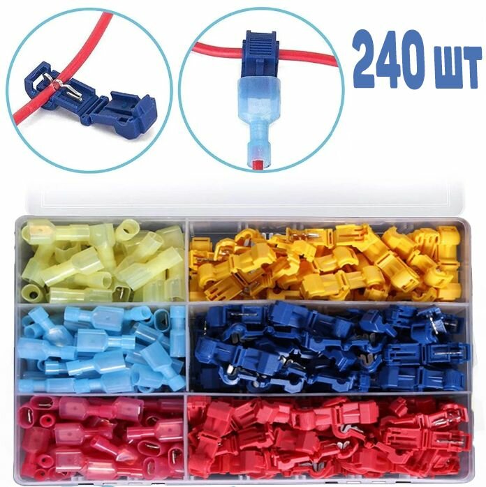 Купить Клеммы типа Т обжимные для проводов с изоляцией 240 шт / колодка клеммная / гильза соединительная/ обжимные наконечники типа Т в кейсе