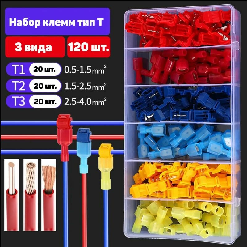 Клеммы типа Т обжимные для проводов с изоляцией 120 шт / колодка клеммная / гильза соединительная/ обжимные наконечники типа Т в кейсе интересное:
