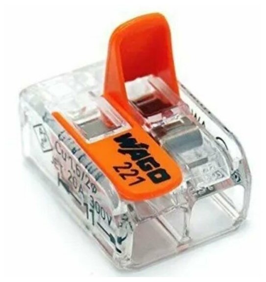 Клеммы WAGO 2-х проводные,Оригинал (221-412) прозрачные/оранжевые 1 упаковка(100 клемм)