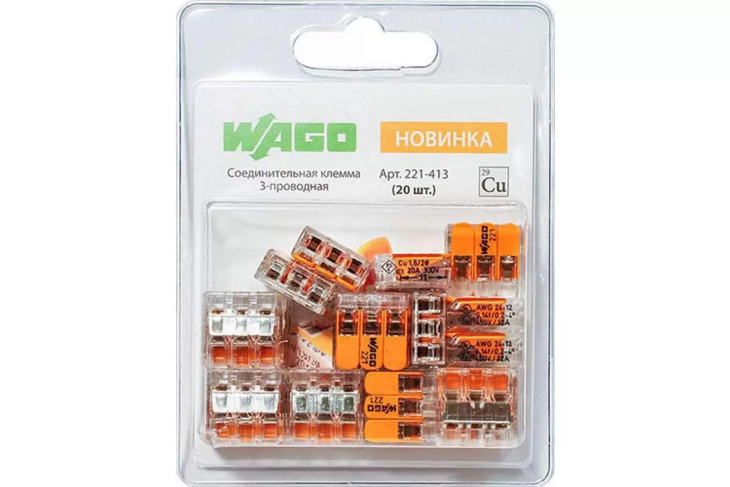 Клемма WAGO 221-413, 20 шт.