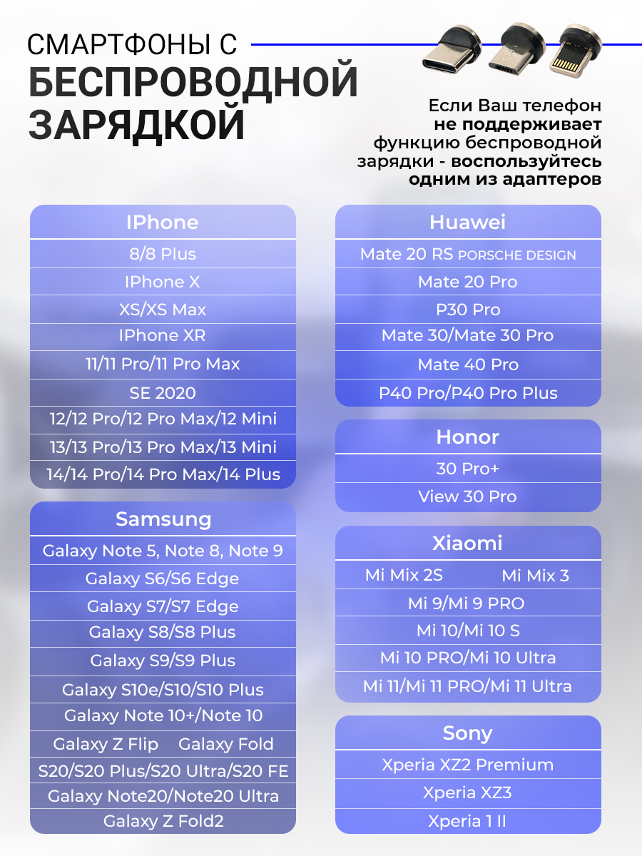 | Дополнительная информация | поддержка беспроводной зарядки; магнитные переходники в комплекте; мощность 15w; рекомендуется использовать в комплекте с usb адаптером в прикуриватель с поддержкой быстрой зарядки; подходит к 90% автомобилей и 99% моделям телефонов; работает от автомобильной сети при включенном зажигании; автохолдер; крепление для телефона с зарядкой; безпроводная зарядка; зарядка через шнур; аксессуар в авто; |