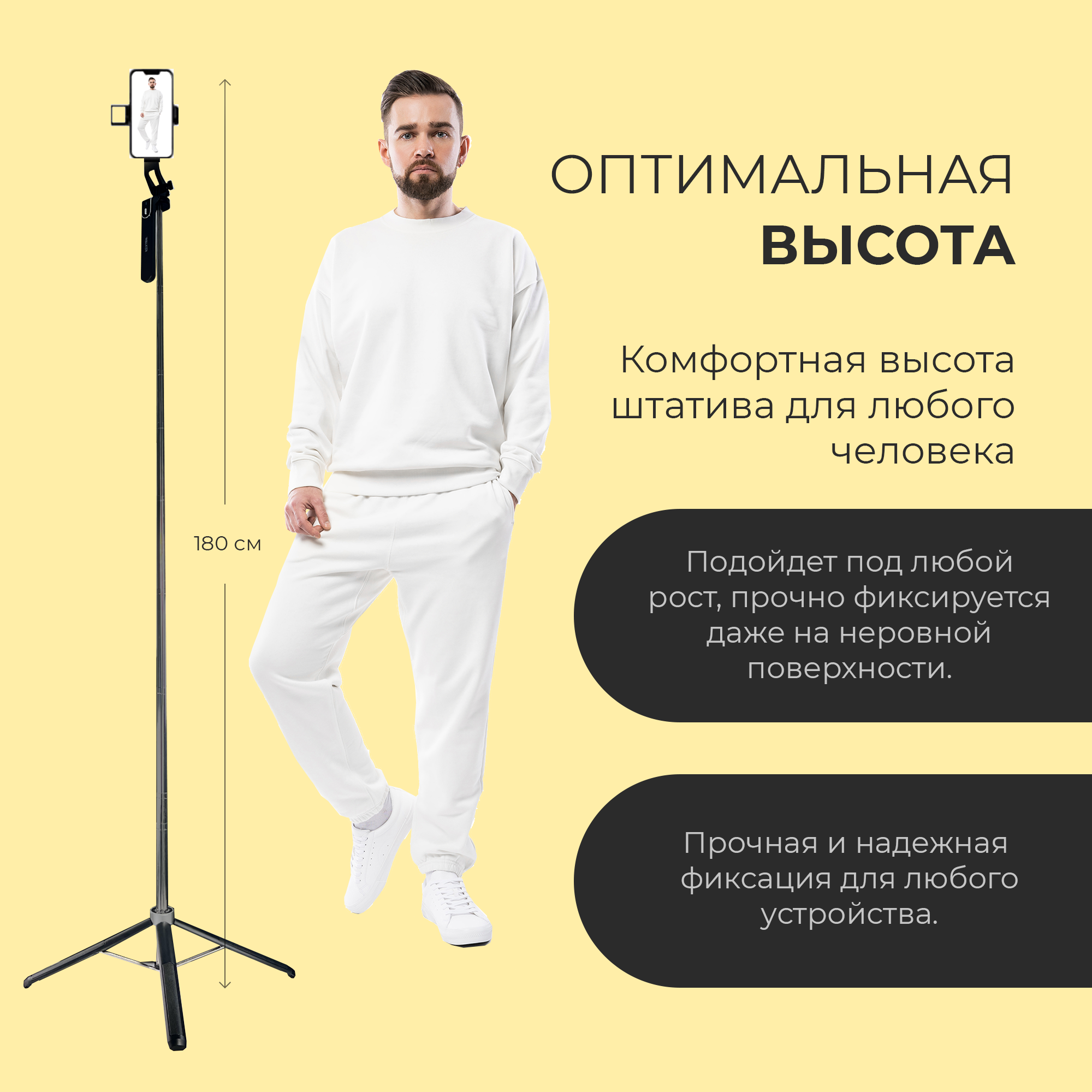 СохранитьШтатив для телефона, WALKER, WTR-80, 180 см, селфи палка, квадропод для смартфона, штатив для фотоаппарата, напольный, настольный, черный интересное: