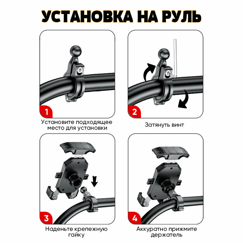 Купить Держатель для телефона на руль велосипед, мотоцикл, самокат, коляску, Держатель для телефона на мотоцикл, Мото/вело держатель для телефона, универсальное крепление подходит для смартфонов/ диагональ от 5,0 до 6,8 дюймов, черный