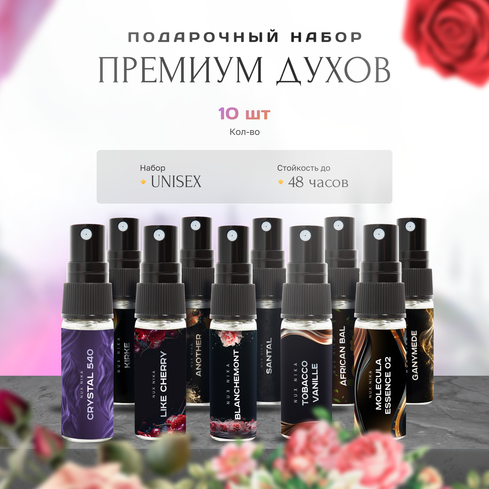 СохранитьДухи женские стойкие NUX NIKA, подарочный набор 10шт по 3мл интересное: