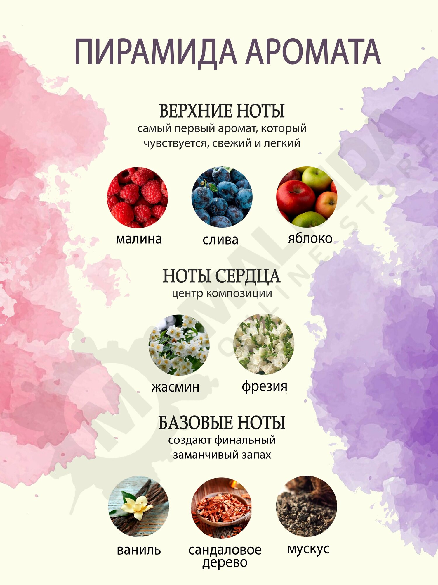 | Базовые ноты | сандаловое дерево, мускус, ваниль |