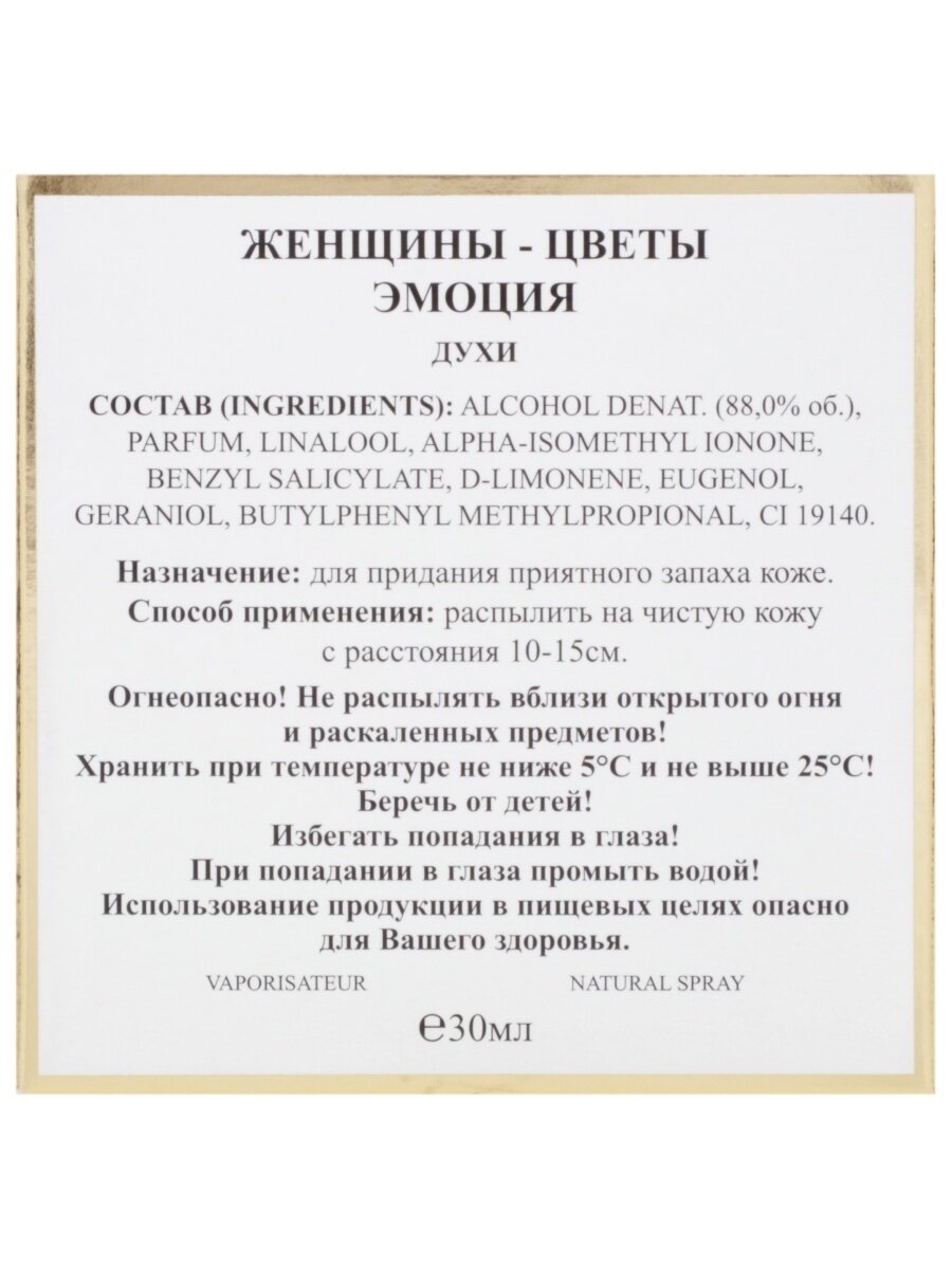 Новая Заря Духи для женщин Женщина-Цветы Эмоция Femmes Fleurs Emotion цветочно-мускусный 88.0% (parfum), спрей 30 мл в футляре интересное: