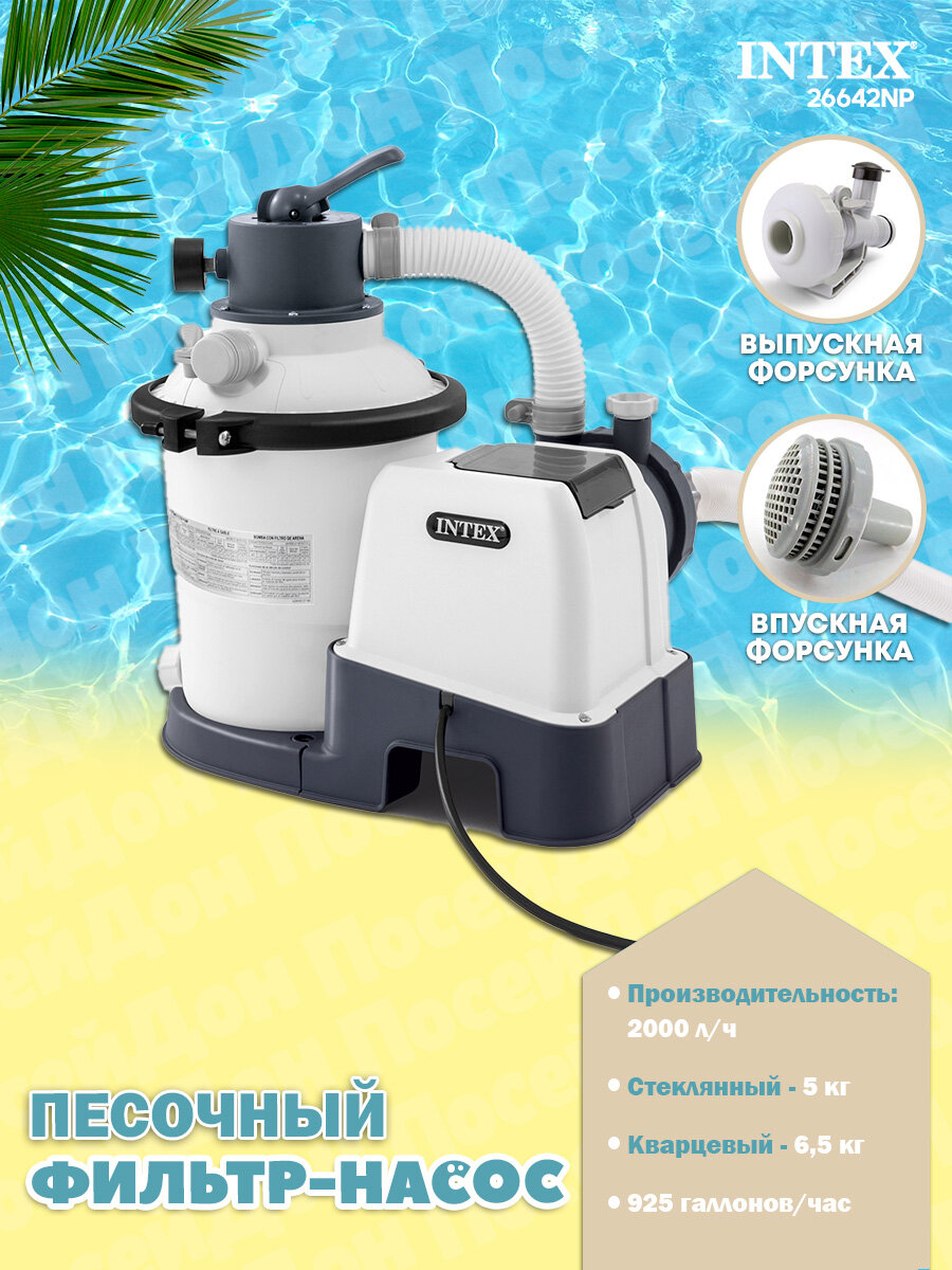 Купить Песочный фильтр насос для бассейна Intex 26642 (2000л/ч) с плунжерными клапанами Intex 25010 и перех
