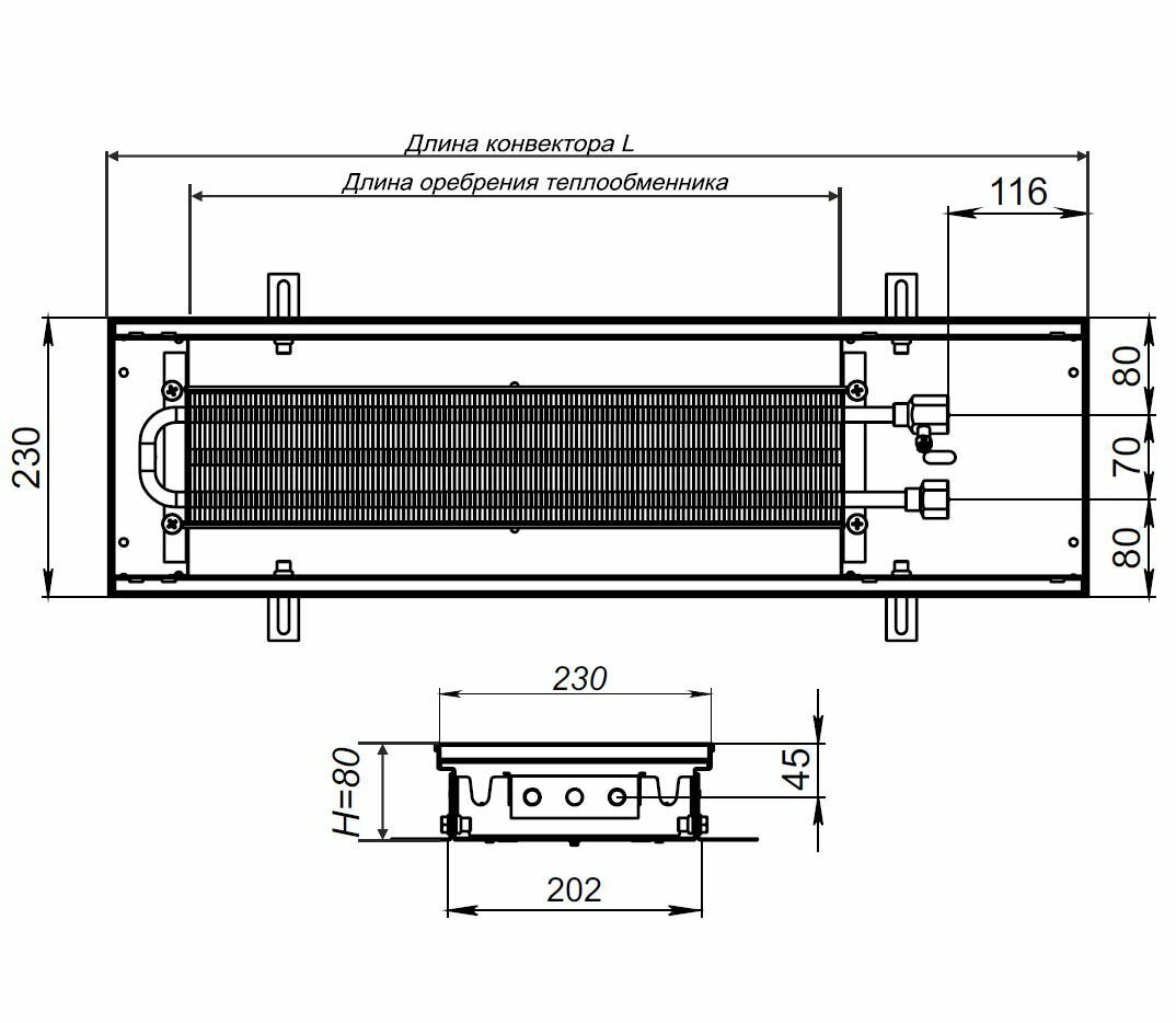 Конвектор внутрипольный водяной с решеткой KVZ 800х230х80