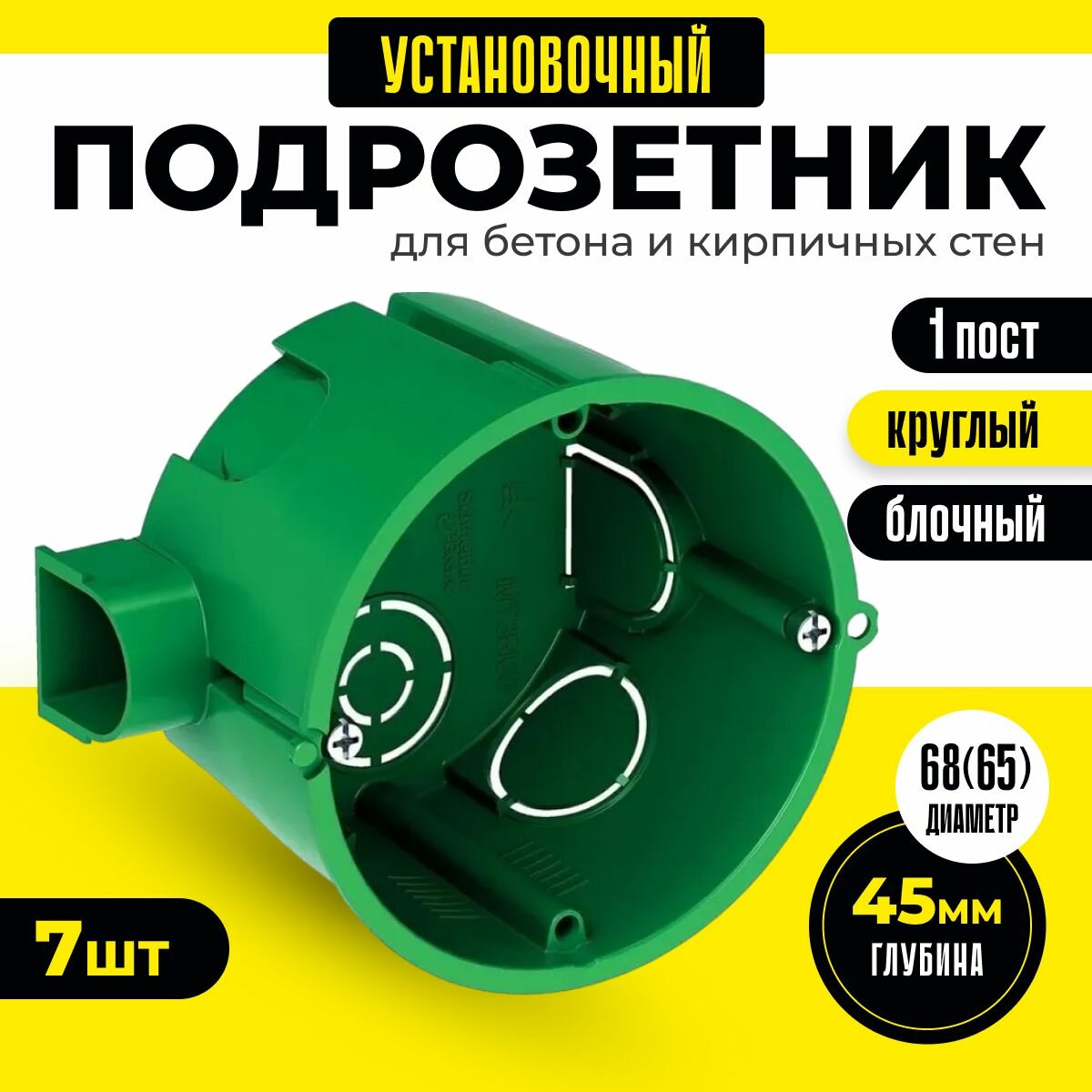 СохранитьПодрозетник 7шт для бетона и кирпичных стен круглый 68(65)x45 коробка установочная для сплошных стен IP30 монтажная коробка Schneider Electric / Systeme Electric Multifix IMT35100 зеленый шнайдер интересное: