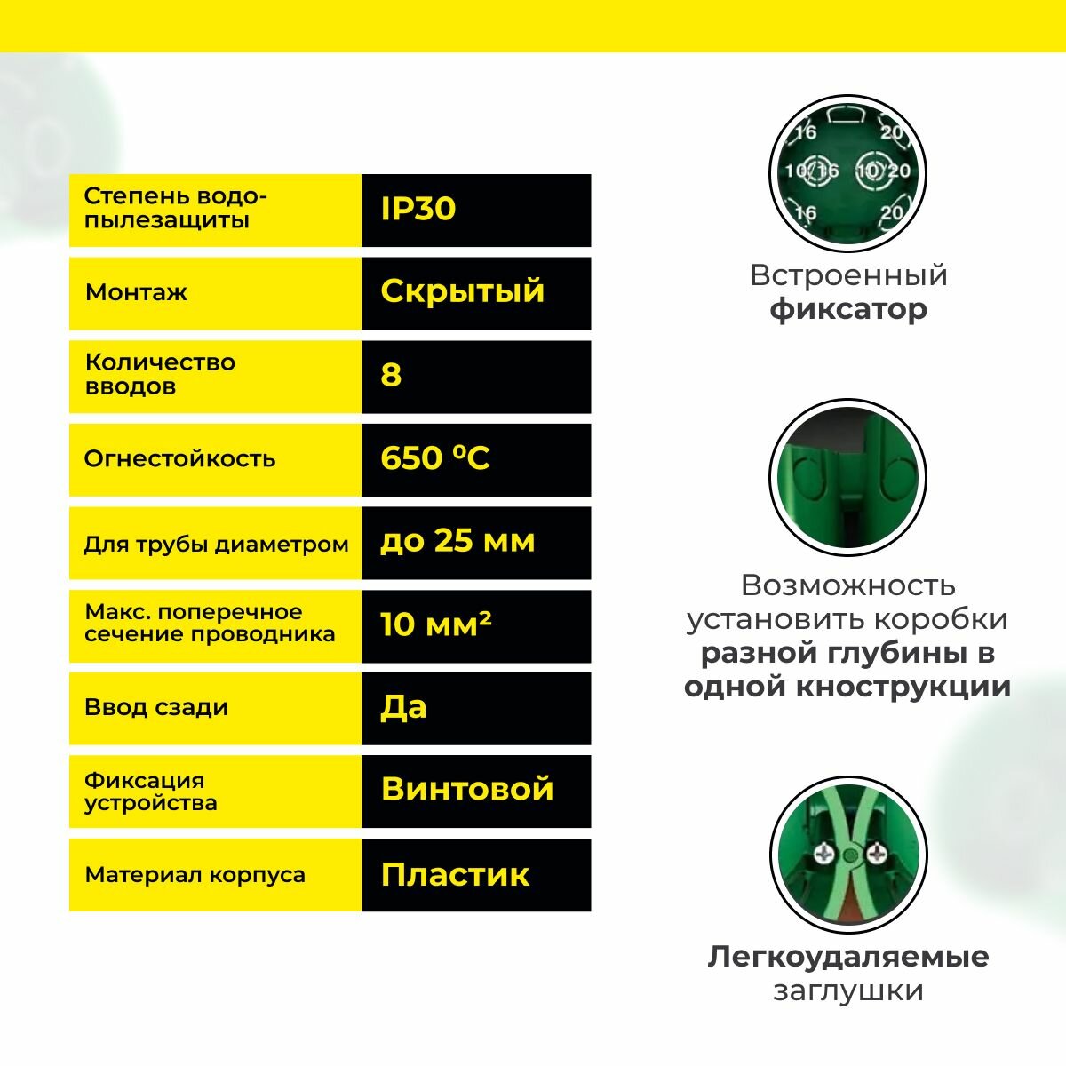 Подрозетник 8 шт 68(65)x45мм IP30 коробка установочная Schneider Electric/ System Electric Multifix круглая для монтажа в кирпичные и бетонные стены зеленый