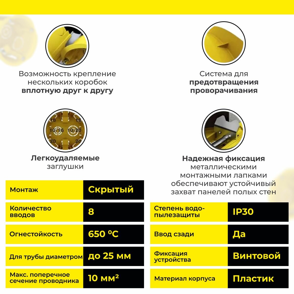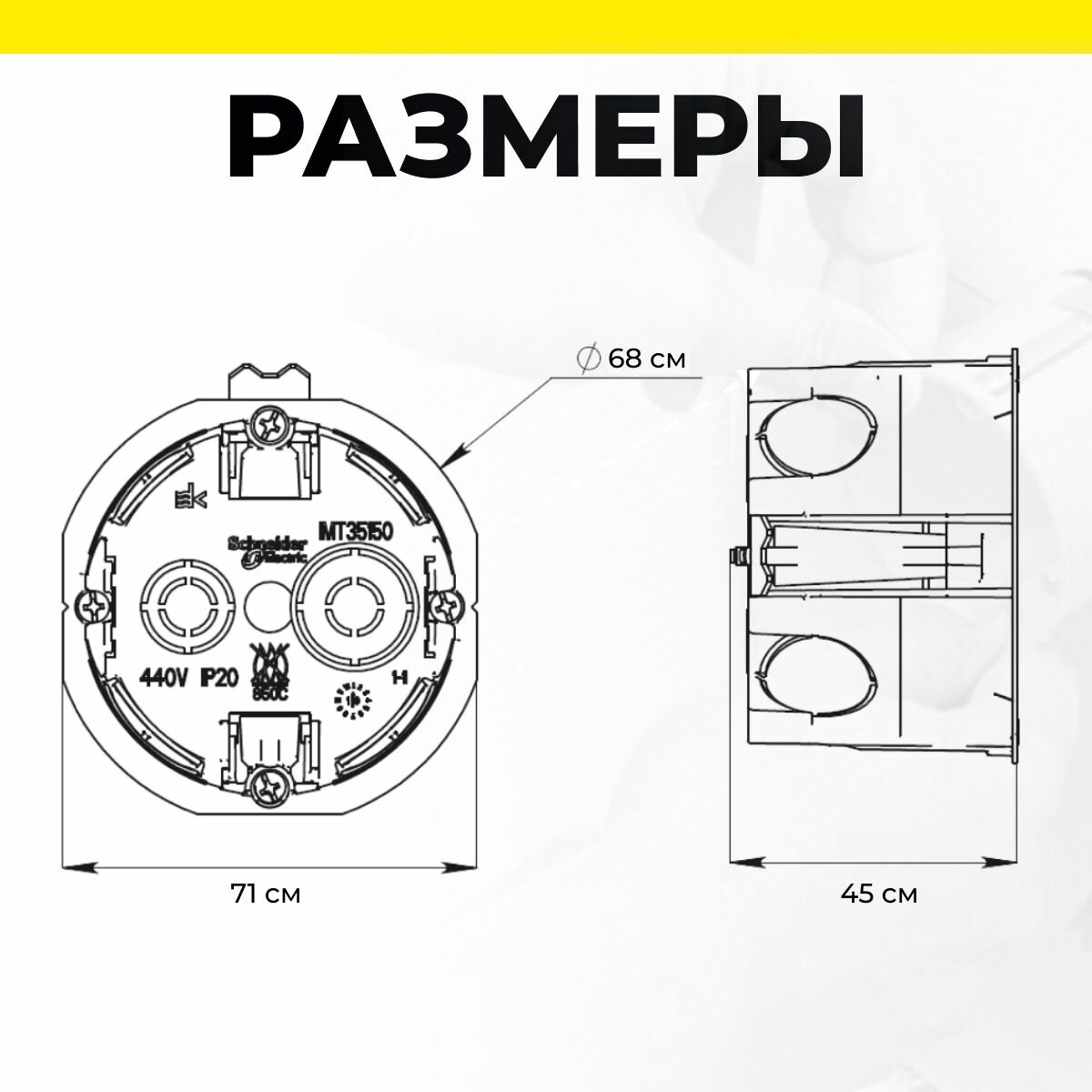 СохранитьПодрозетник 20 шт для гипсокартона 68(65)x45мм коробка установочная круглая желтая IP20 Schneider Electric / System Electric Multifix IMT35150 шнайдер интересное: