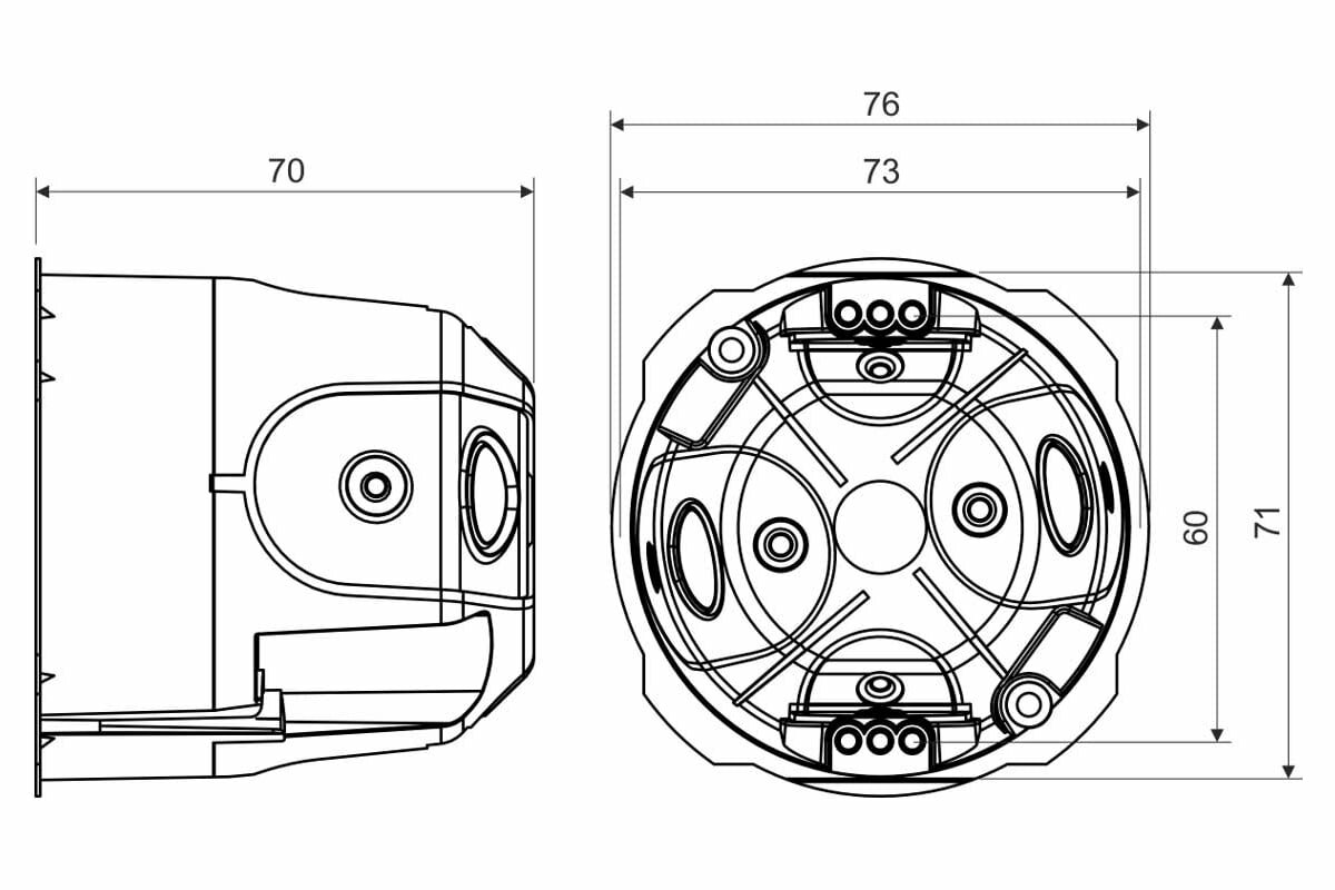 Kopos 70. Одноместный герметичный подрозетник в дерево, гипсокартон, диаметр 73 мм глубина 70 мм KPRL 68-70/LD, комплект 2 шт.