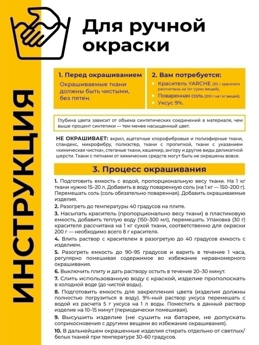 Краска для ткани и одежды, универсальный краситель YARCHE интересное: