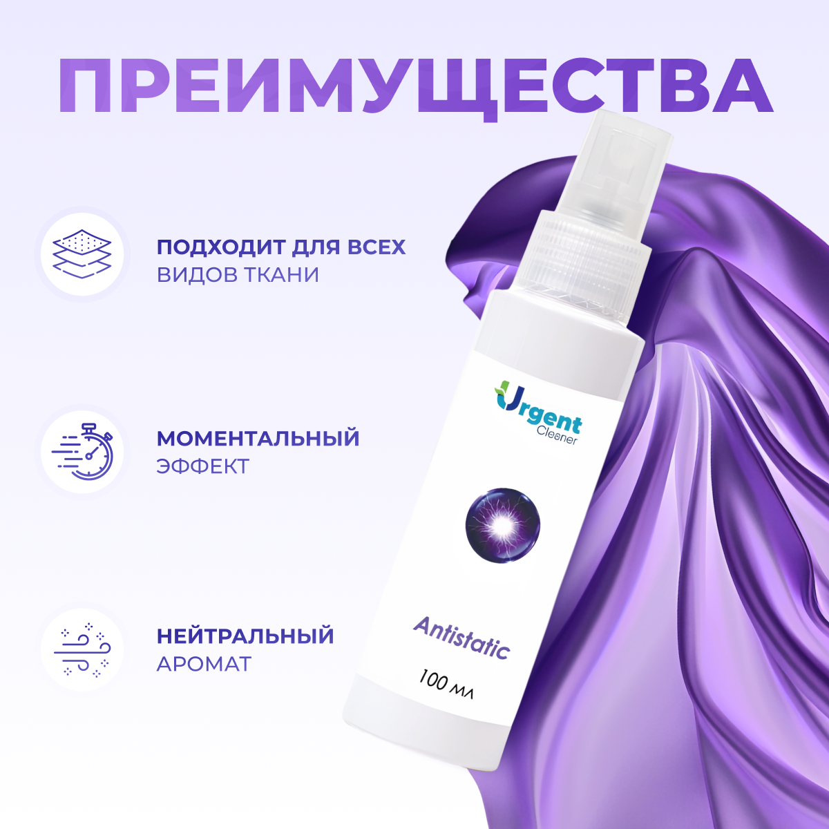 Антистатик Urgent, спрей для одежды, белья и мебели, фиолетовый, 100мл