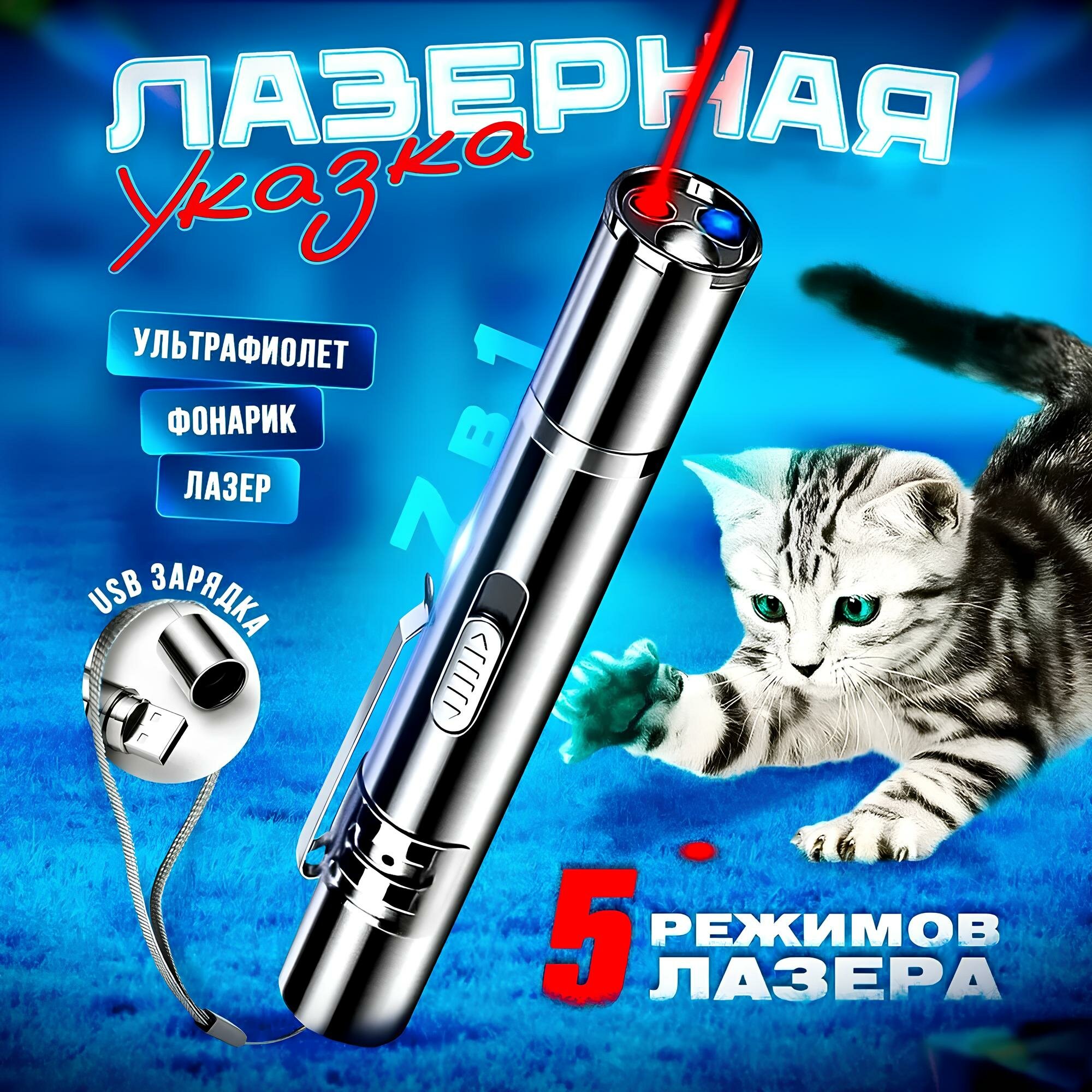 Купить Лазерная указка SimpleShop 7 в 1 для кошек и собак, Лазер, УФ, Фонарик, с USB зарядкой.