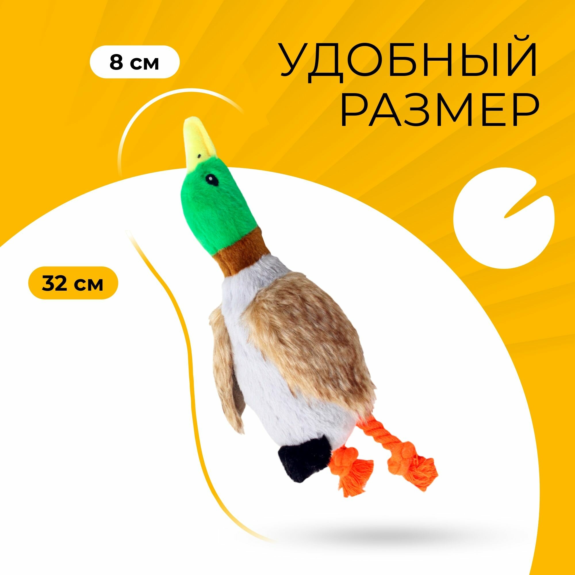 Купить Игрушка для собак мелких, средних пород и щенков / мягкая, шуршащая, серая / утка с пищалкой без наполнителя для игр дома и на улице