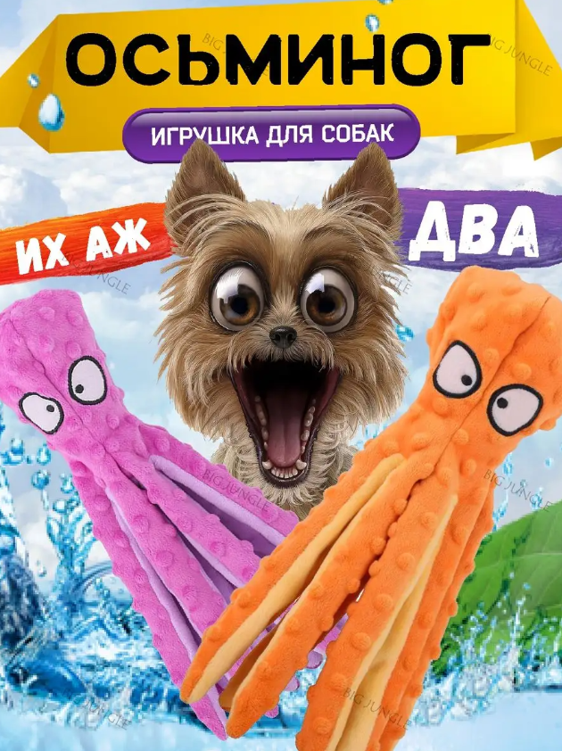 СохранитьМягкие игрушки для собак шуршащие, осьминог фиолетовый и оранжевый интересное: