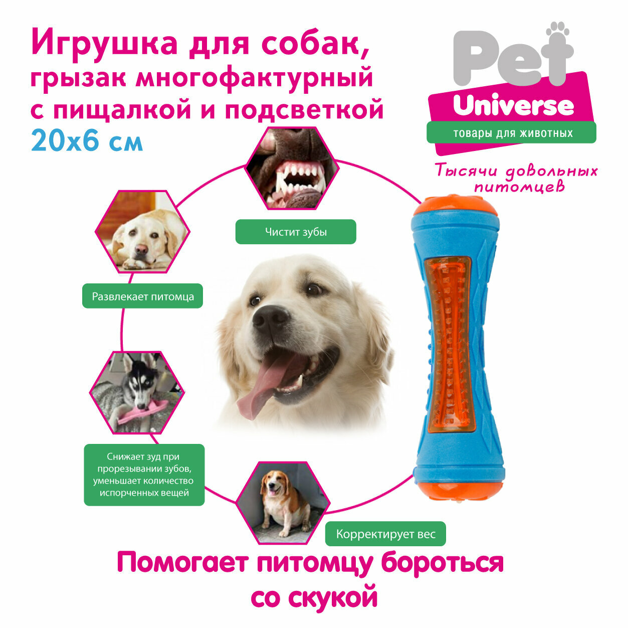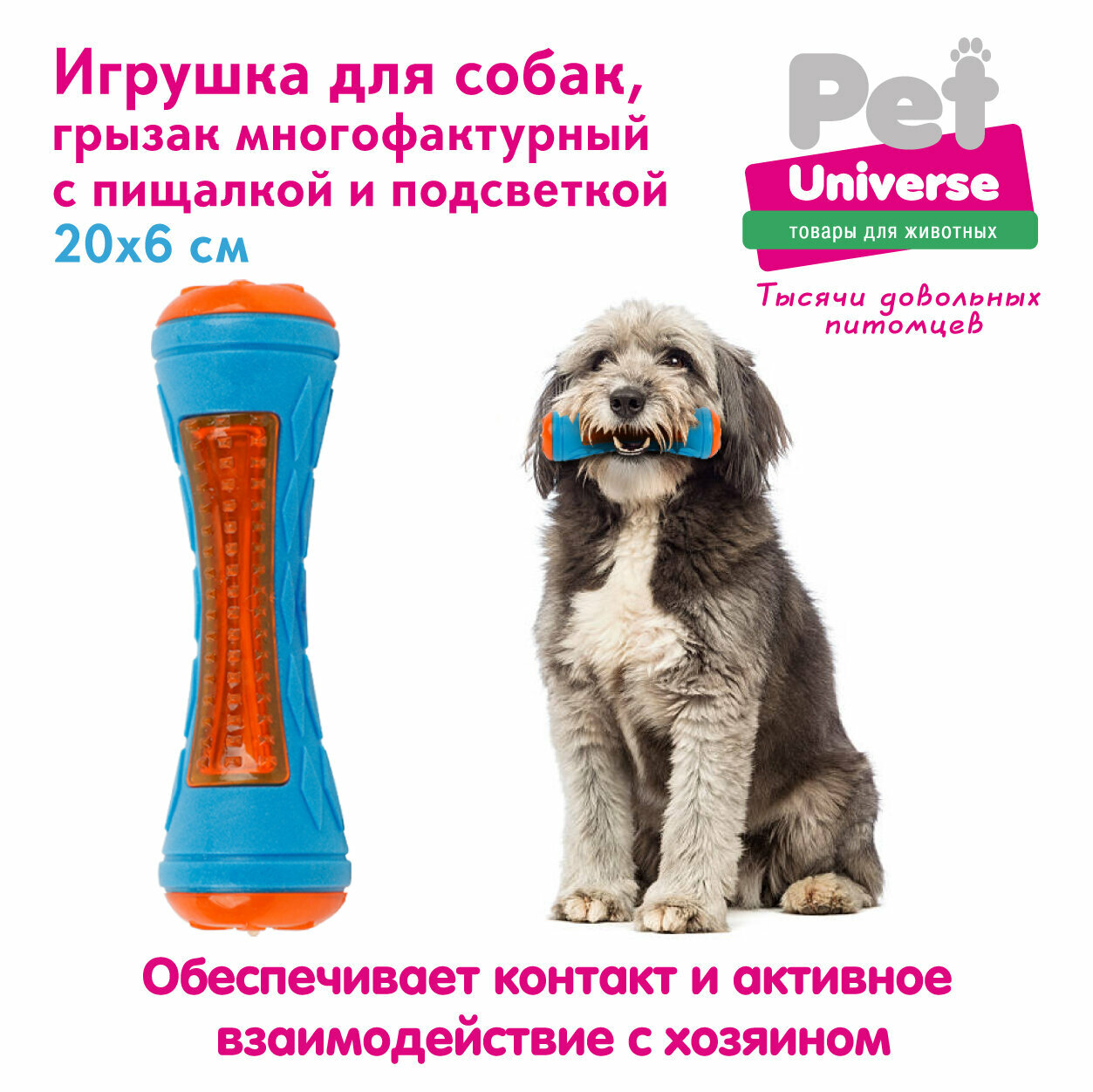 Игрушка для собак Pet Universe Грызак многофактурный прочный светящийся палка жевательная 20х6 см, 138 гр. ТПР, PU3068 интересное: