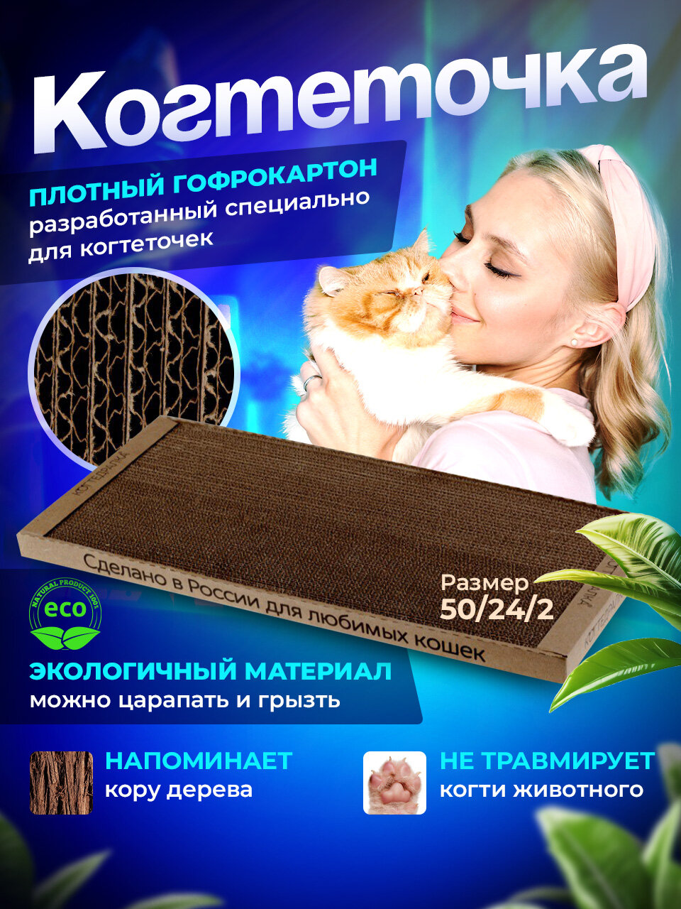 Когтедралка Картонная когтеточка для кошек когтедралка-крафт 50*24*2.5см