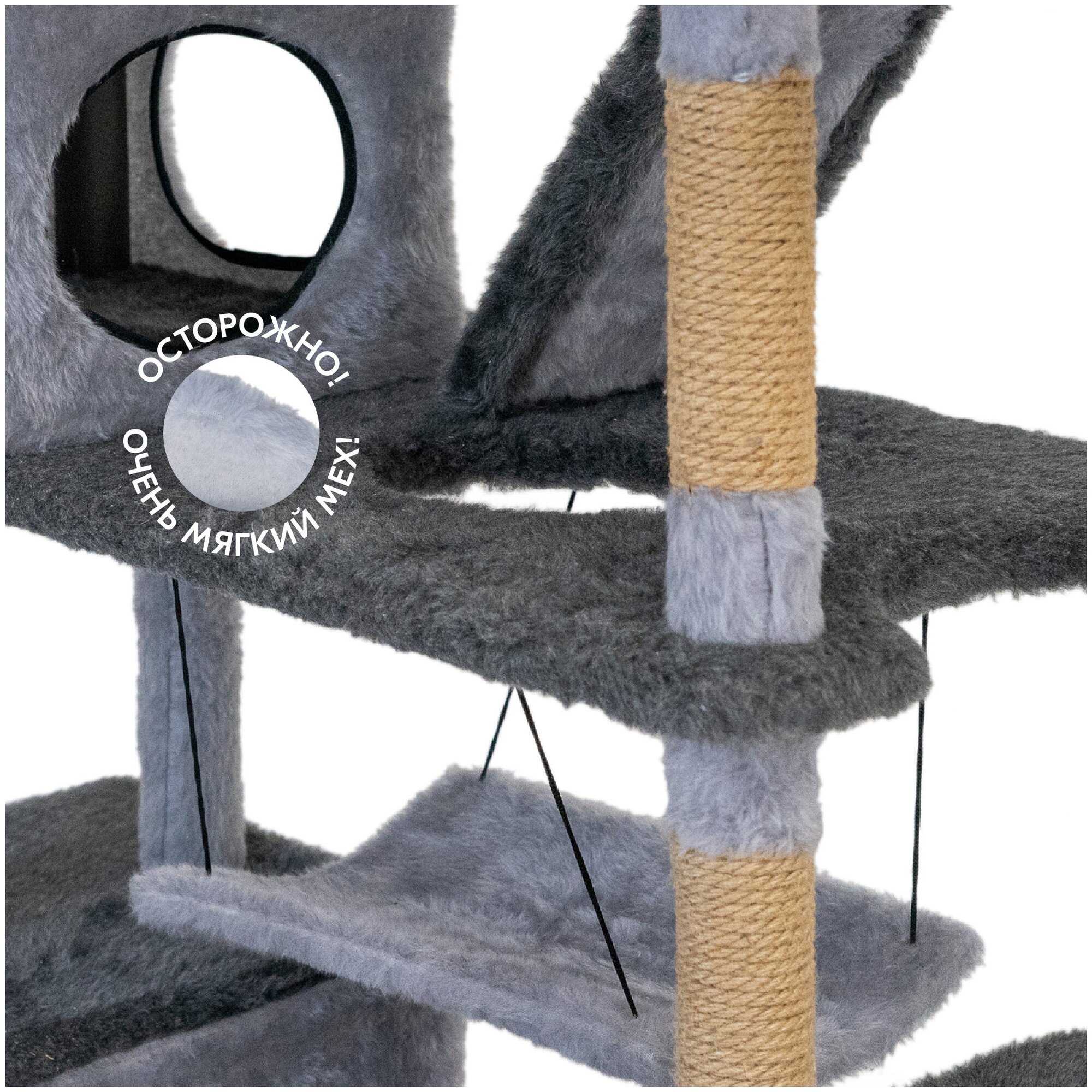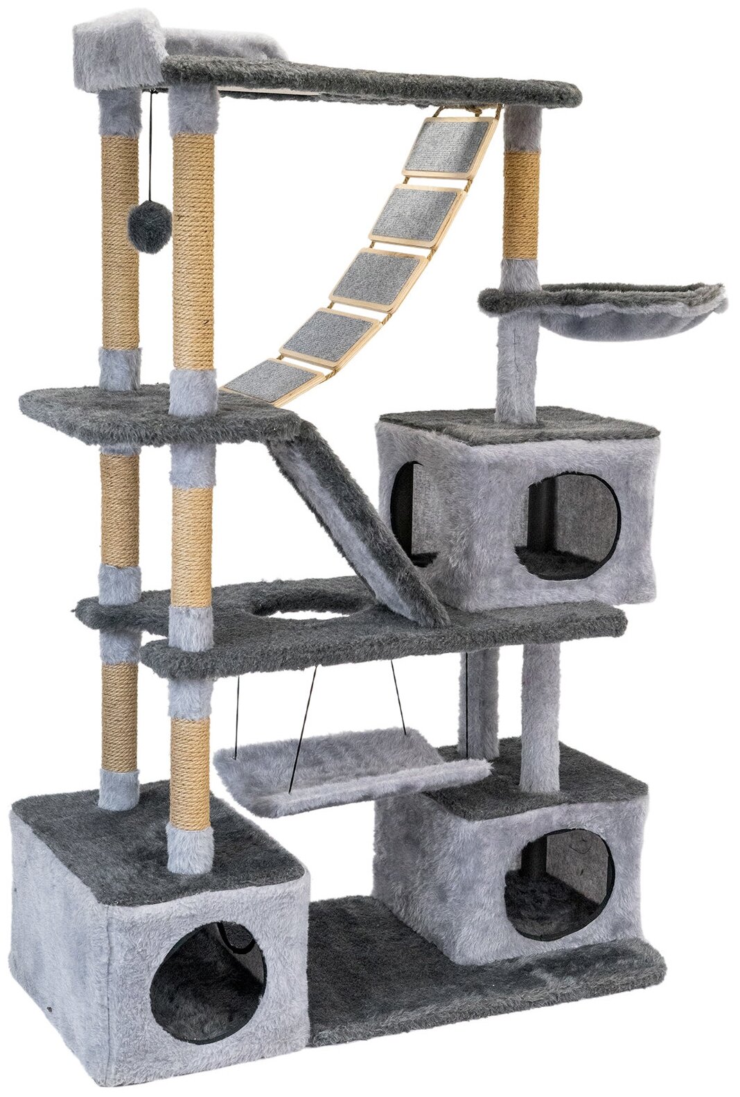 Когтеточка для кошек, игровой комплекс PetTails "виктор" разборный, 5-ти уровневый, с качелями и гамаком 143 х 45 х 94см, серый интересное: