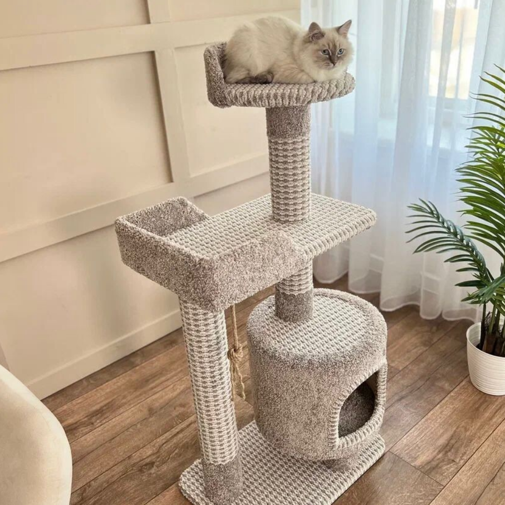 Когтеточка " Котосчастье" с домиком и лежанками из ковролина, высота 123 см