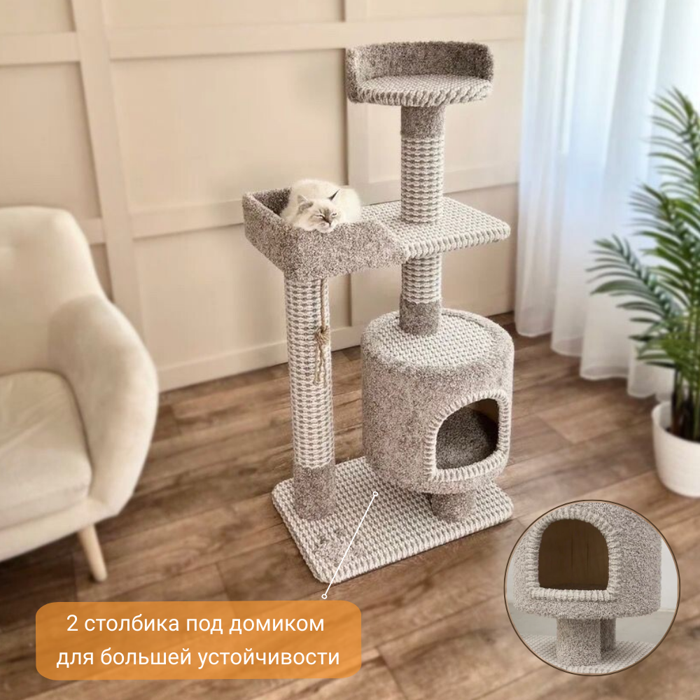 Когтеточка "Котосчастье" с домиком и лежанками из ковролина, высота 123 см