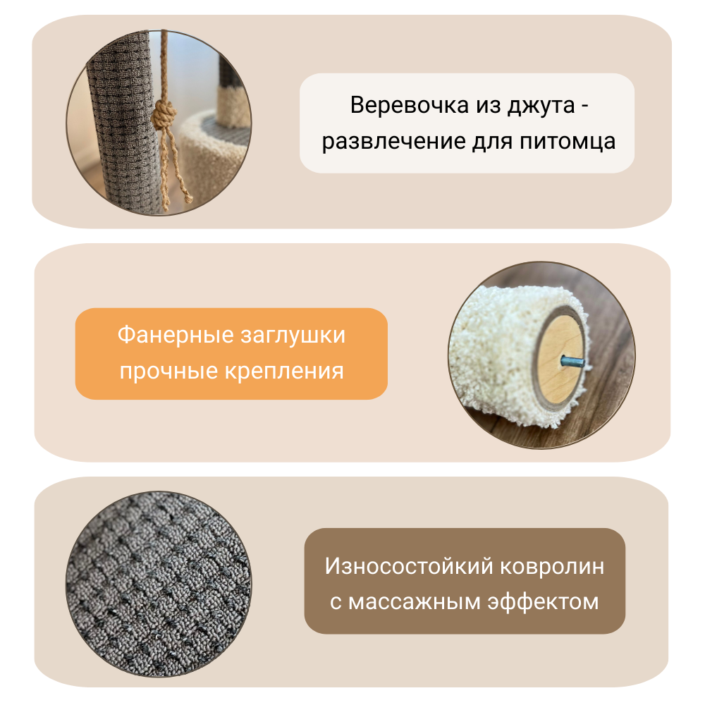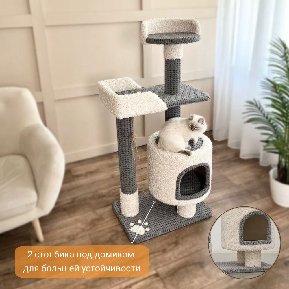Когтеточка "Котосчастье" с домиком и лежанками из ковролина, высота 123 см