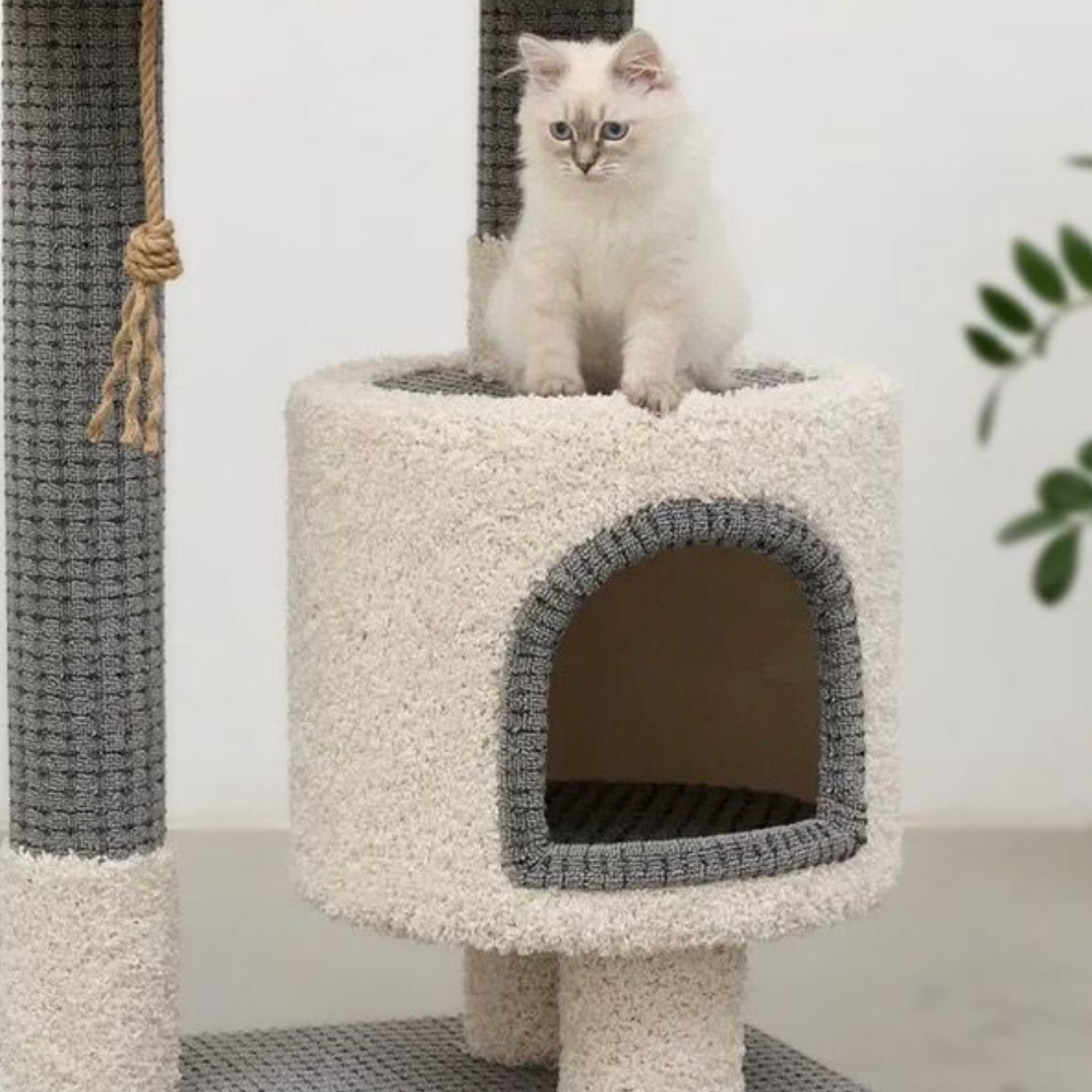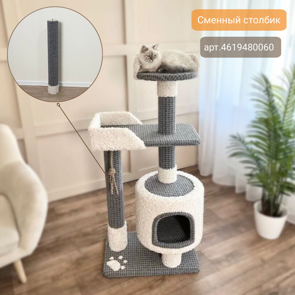 Когтеточка " Котосчастье" с домиком и лежанками из ковролина, высота 123 см