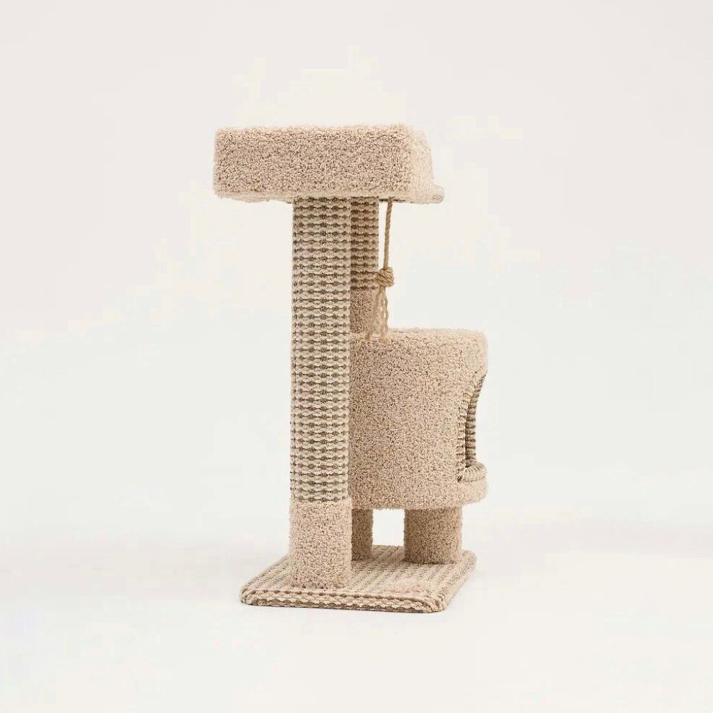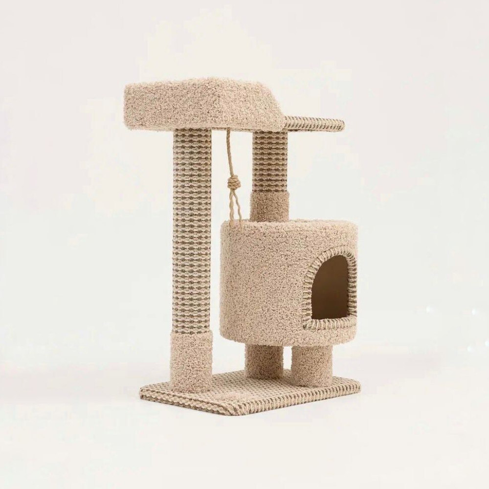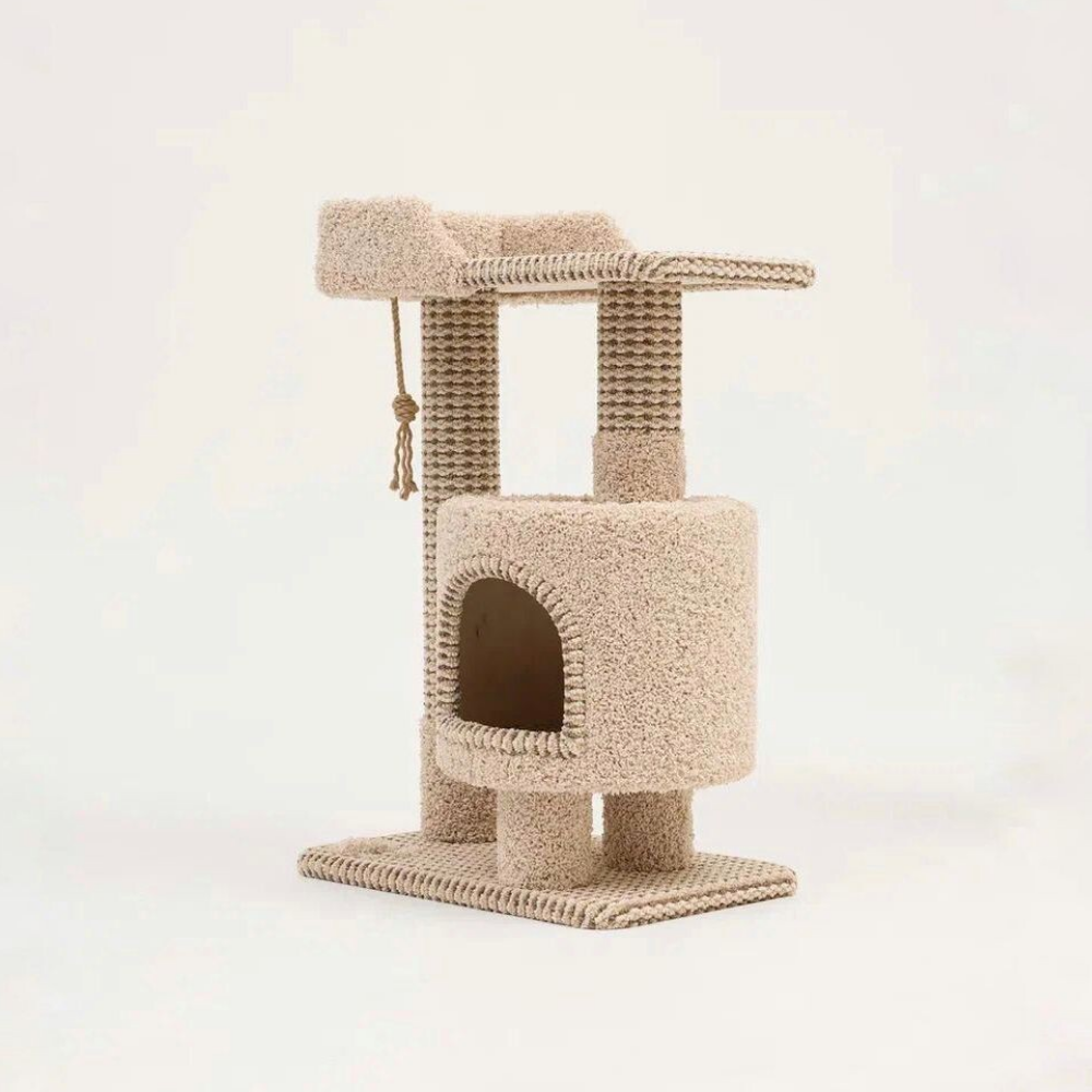 Когтеточка " Котосчастье" с домиком и лежанкой из ковролина, высота 88 см, цвет - бежевый