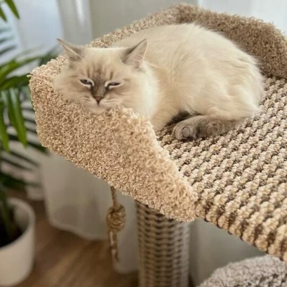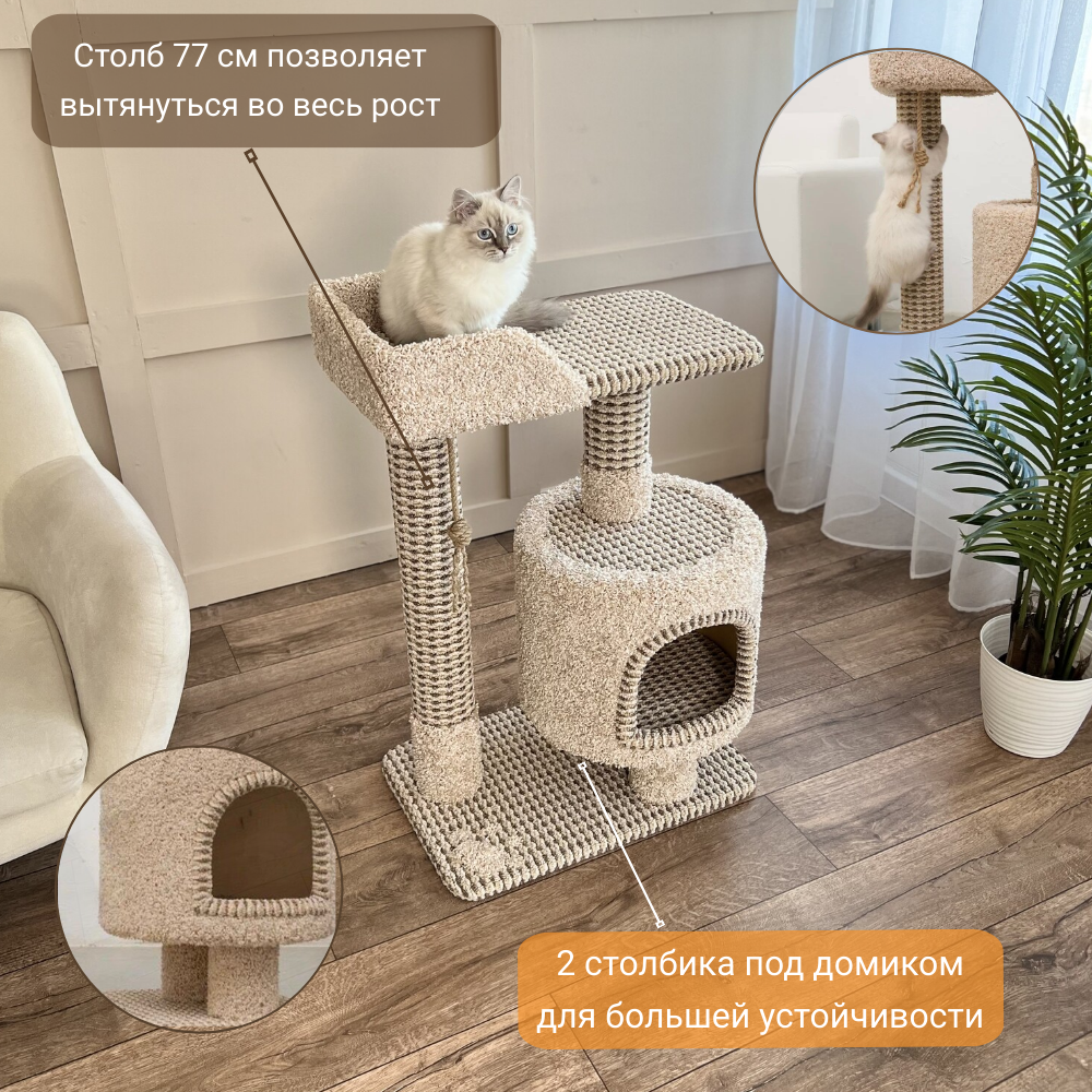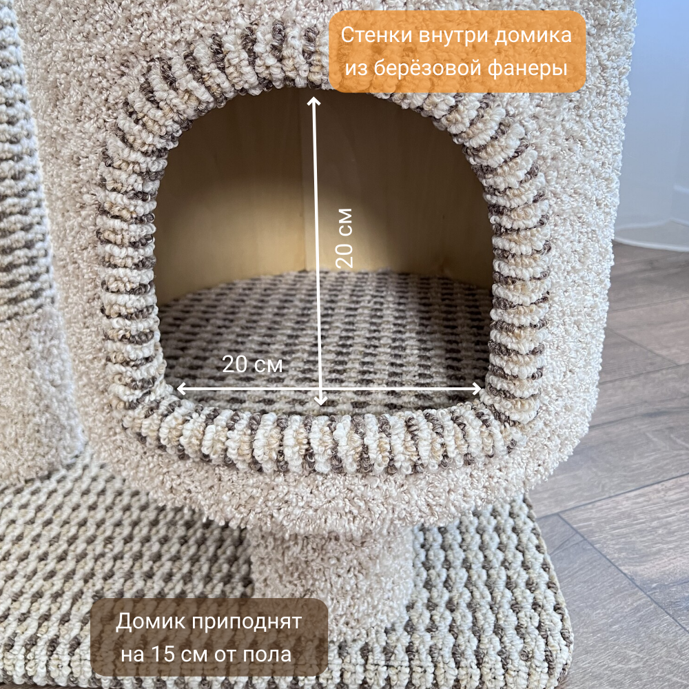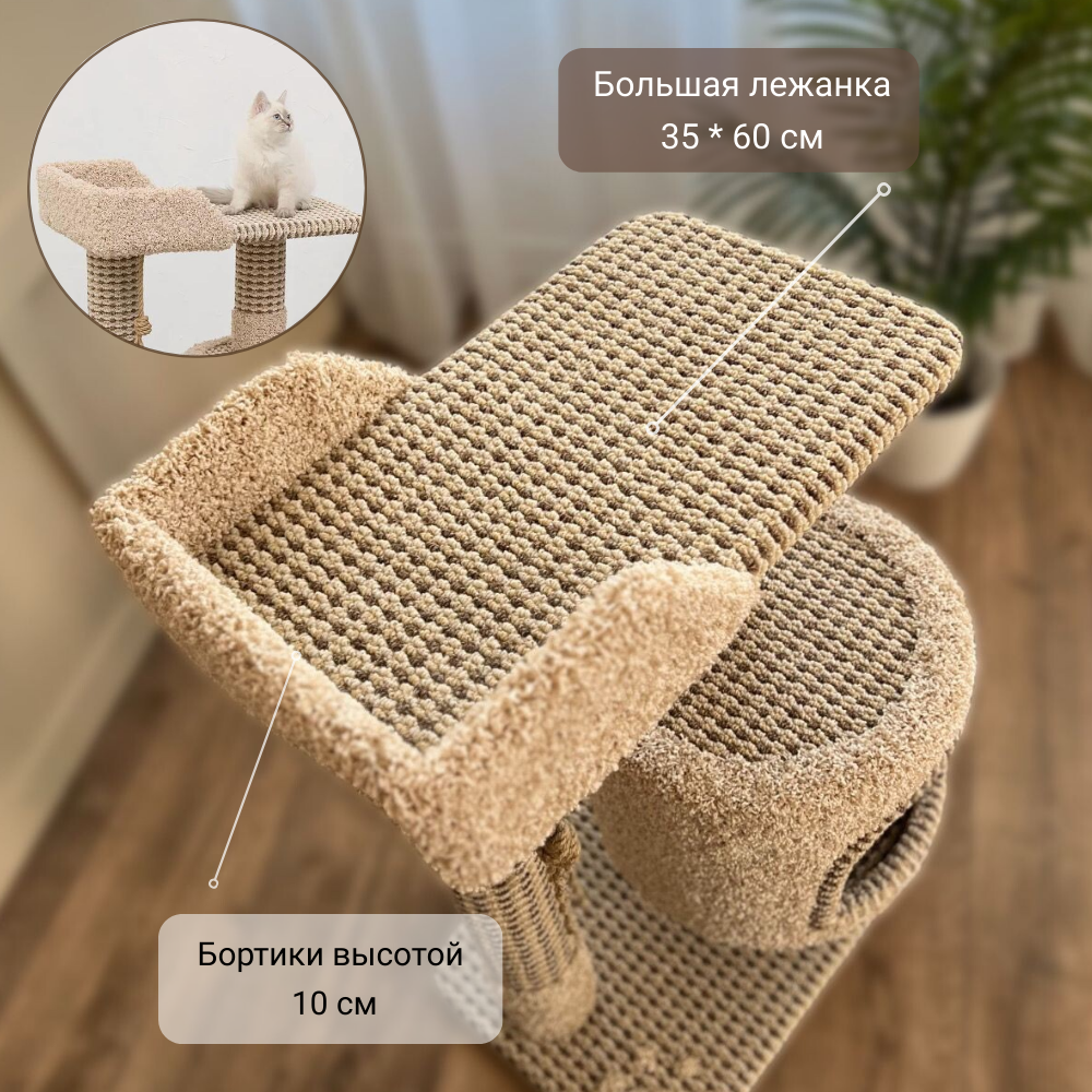 Купить Когтеточка " Котосчастье" с домиком и лежанкой из ковролина ,высота 90 см,цвет -бежевый