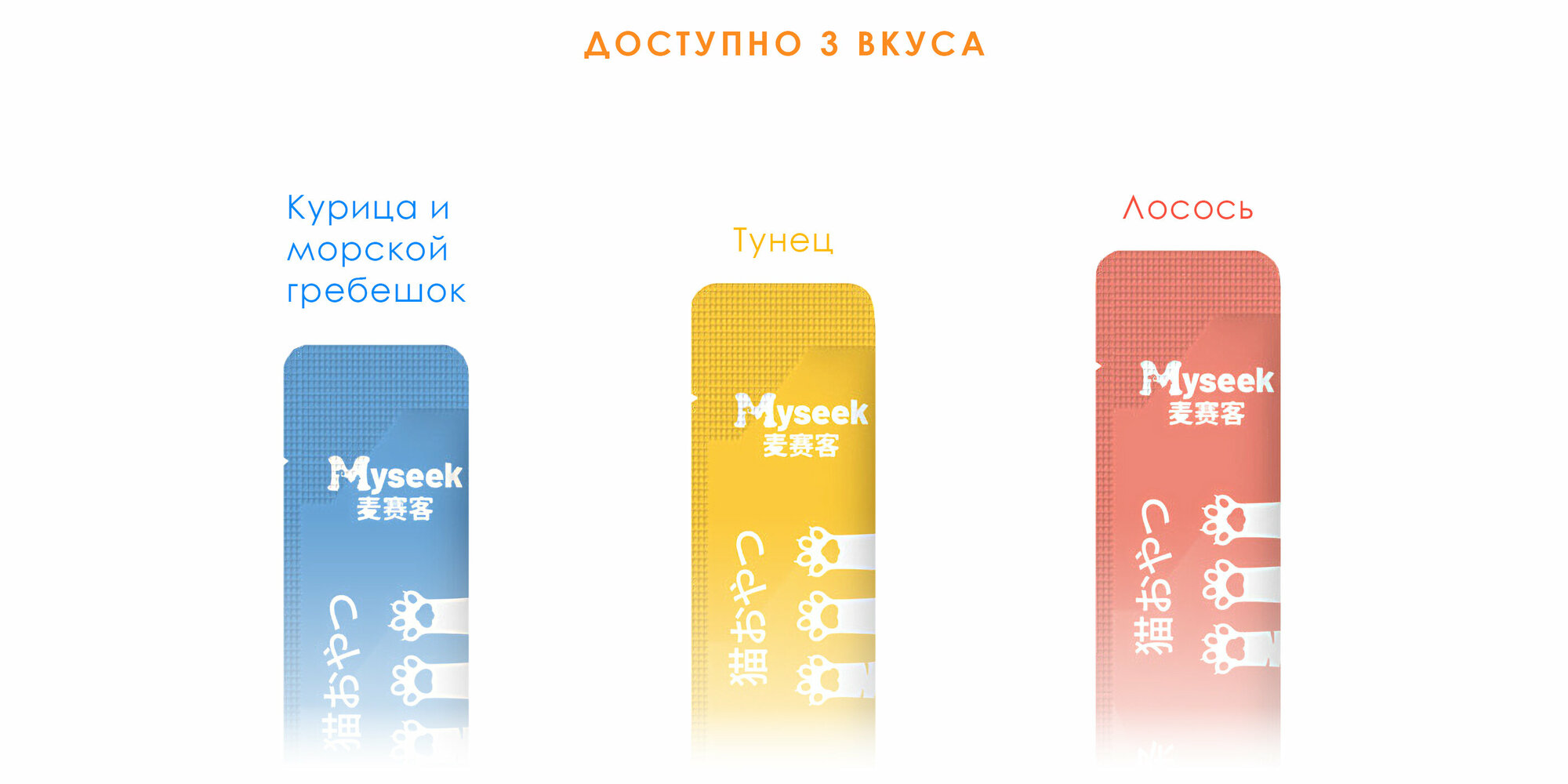 "Myseek лакомство для кошек "нежное пюре" с морским гребешком и курицей 10 шт х 15 г.