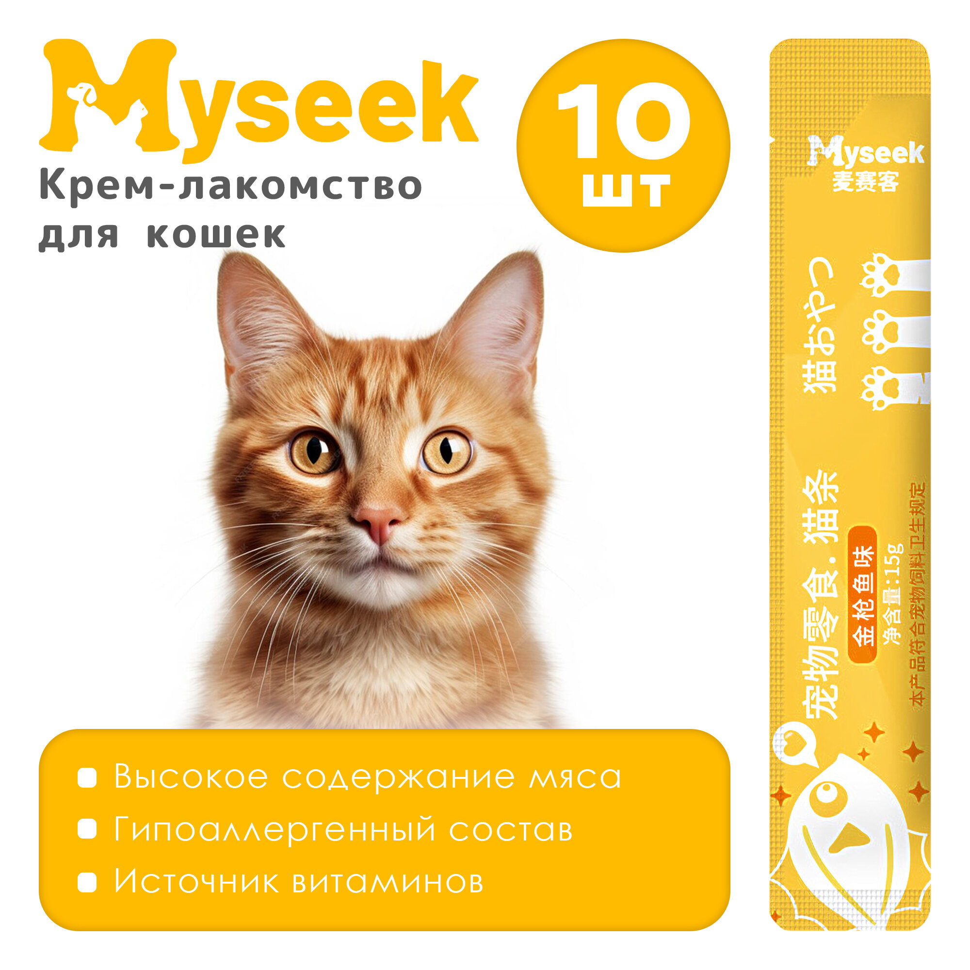 "Myseek лакомство для кошек "нежное пюре" с Тунцом 10 шт х 15 г. интересное: