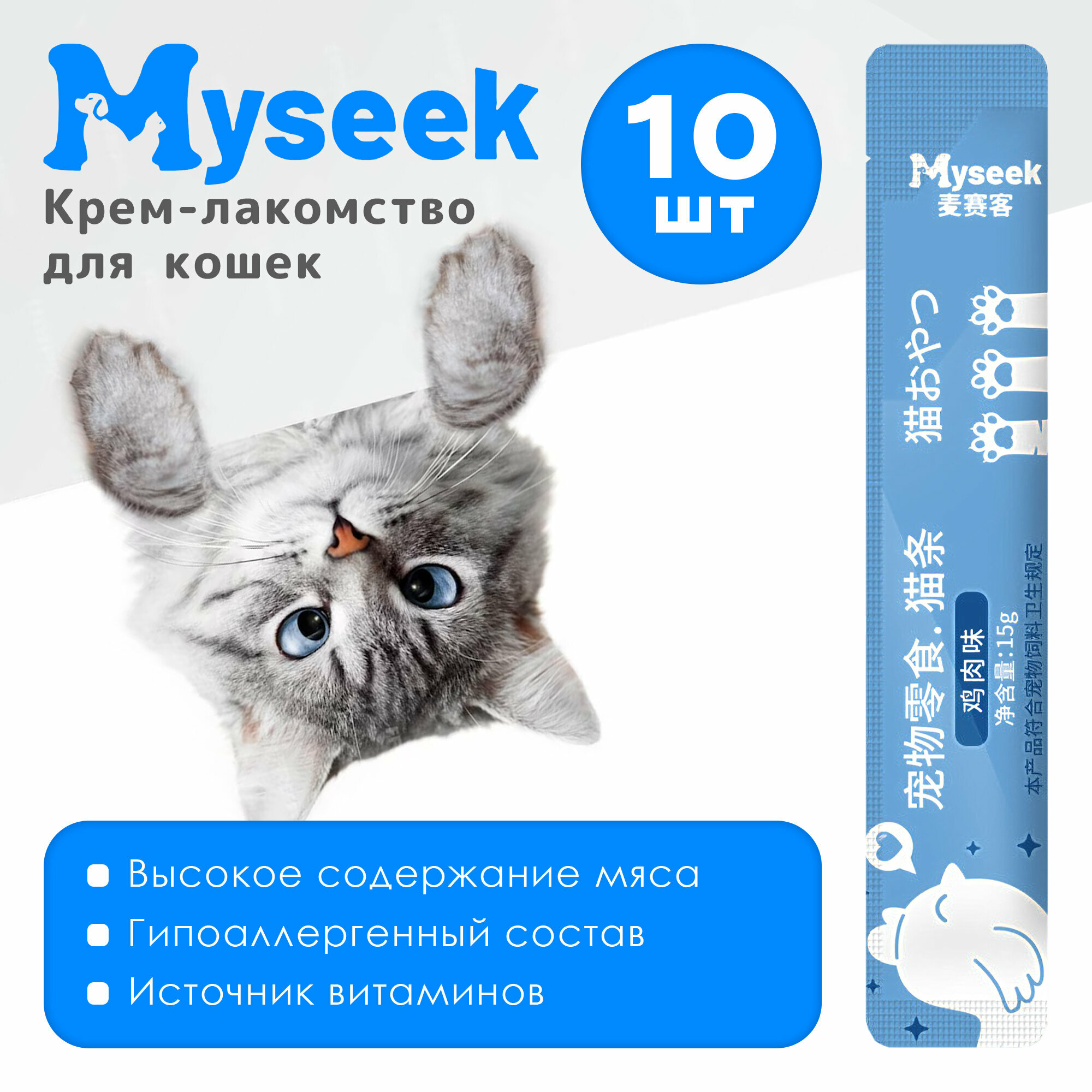 Купить "Myseek лакомство для кошек "нежное пюре" с морским гребешком и курицей 10 шт х 15 г.