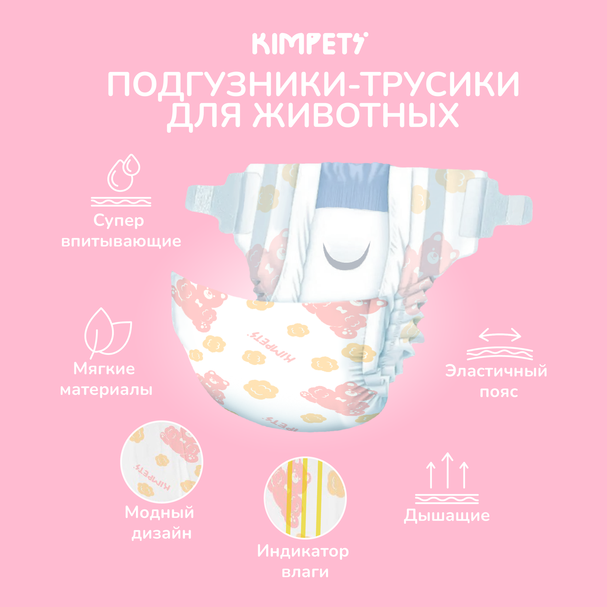 Подгузник Kimpets для собак и кошек, размер S, 20 штук