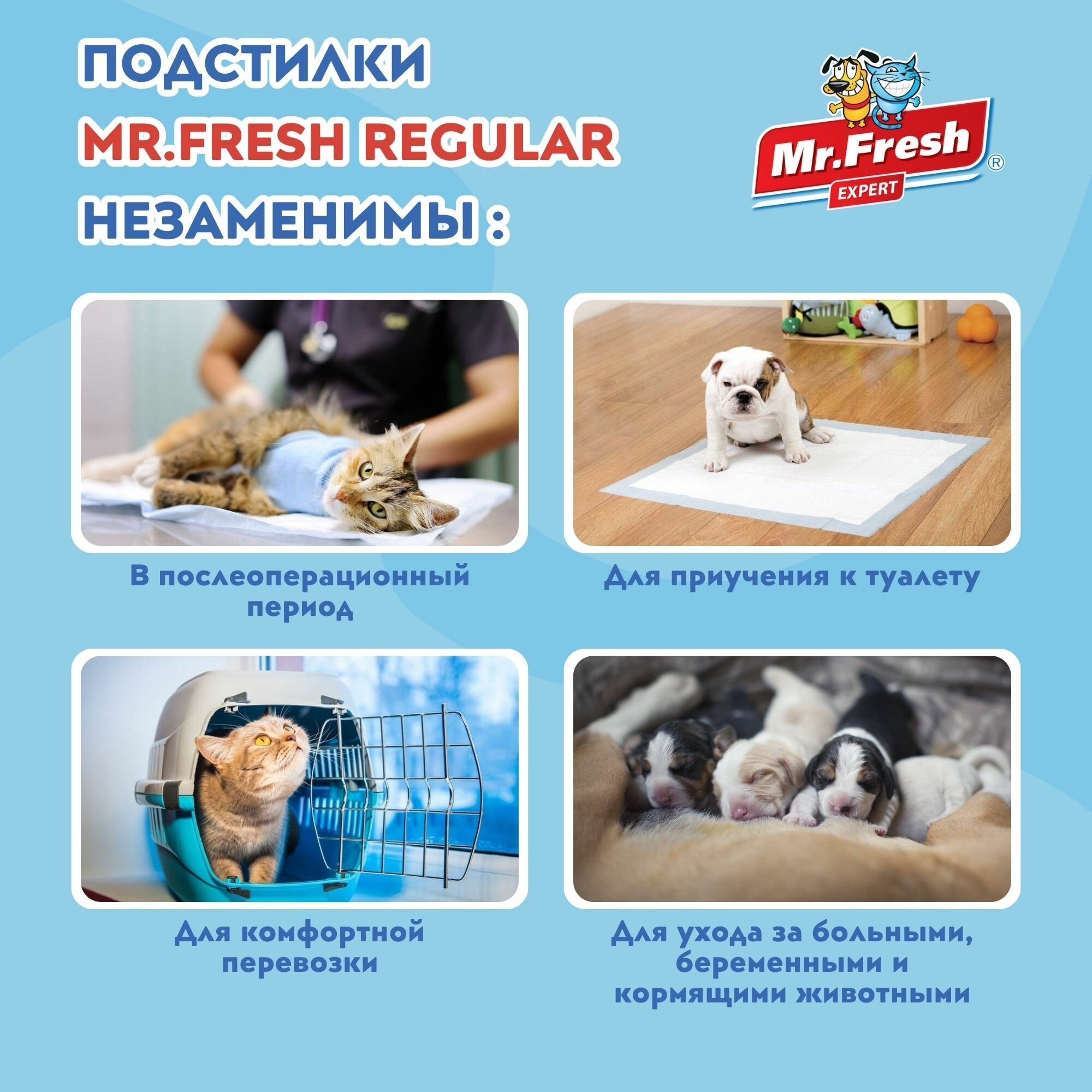 Пеленки для собак и кошек Mr.Fresh Expert Regular 40 х 60 см 30 шт интересное: