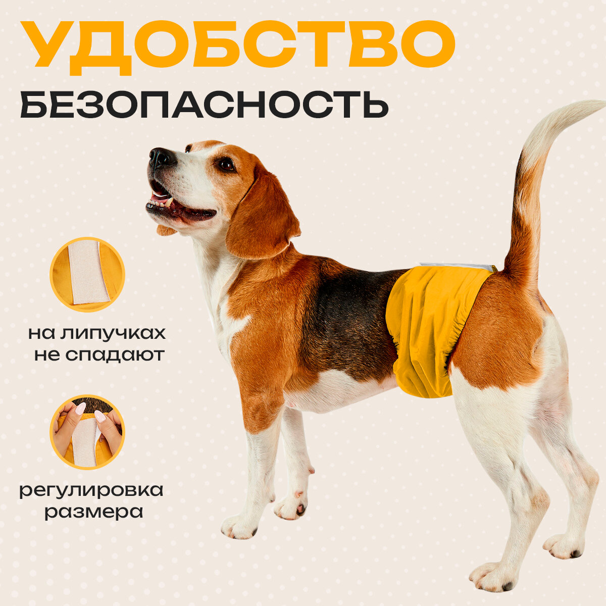 Пояс для кобелей Big Tiny, многоразовый, для щенков, желтый, XL/ Заменит трусы, памперсы, подгузники.