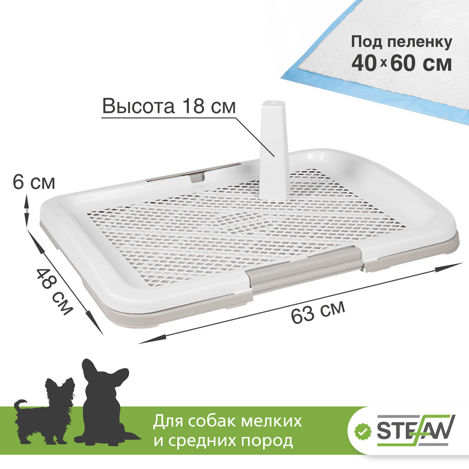 Лоток с сеткой и столбиком для собак и щенков STEFAN (Штефан), туалет малый (S) 47х34х6, белый, BP1590