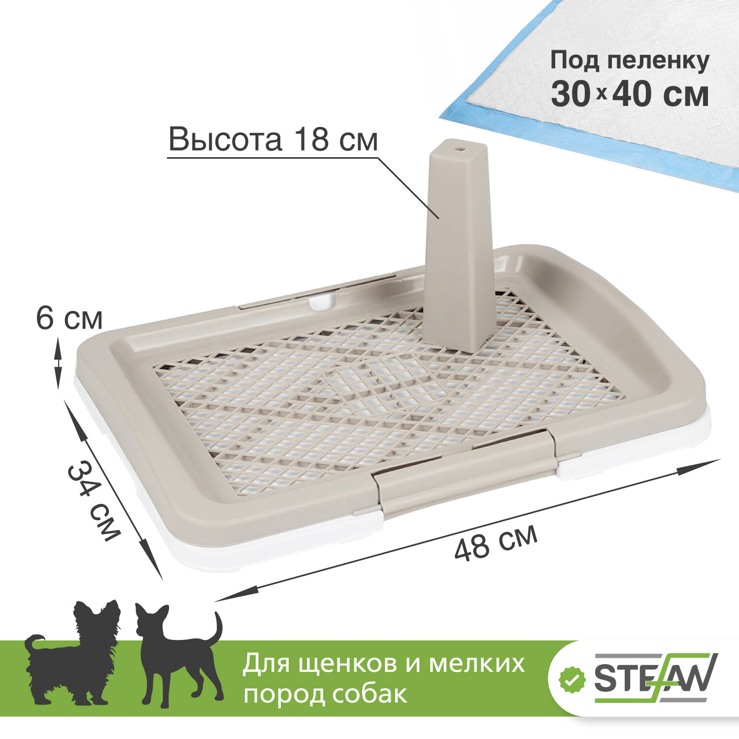 Лоток с сеткой для собак STEFAN (Штефан) туалет со столбиком, под пеленку для щенков, собак малых и средних пород (S) размер 47х34х6 BP1591