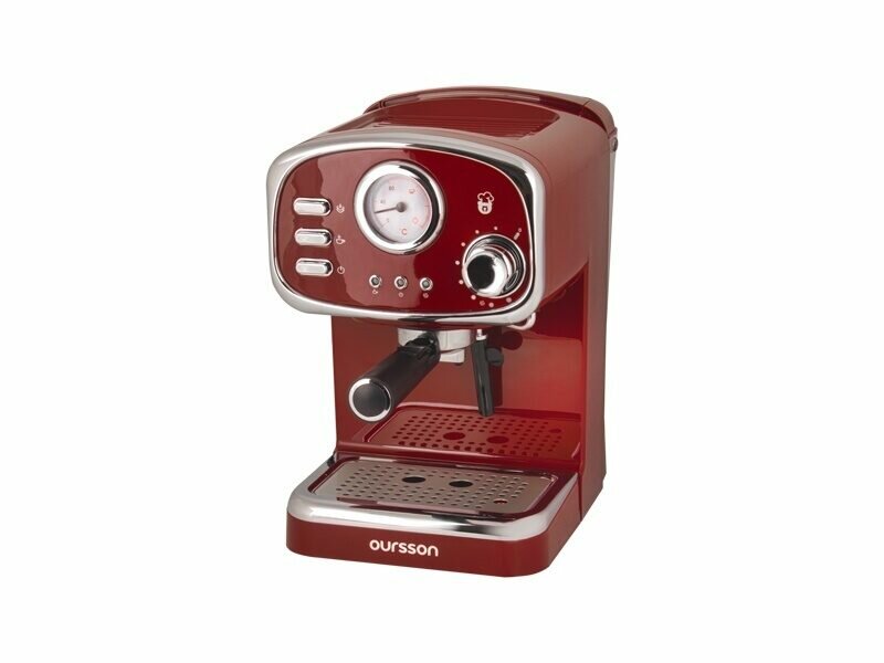Кофеварка Oursson "EM1510/RD", красная, рожковый тип, давление 15 Бар, приготовление капучино