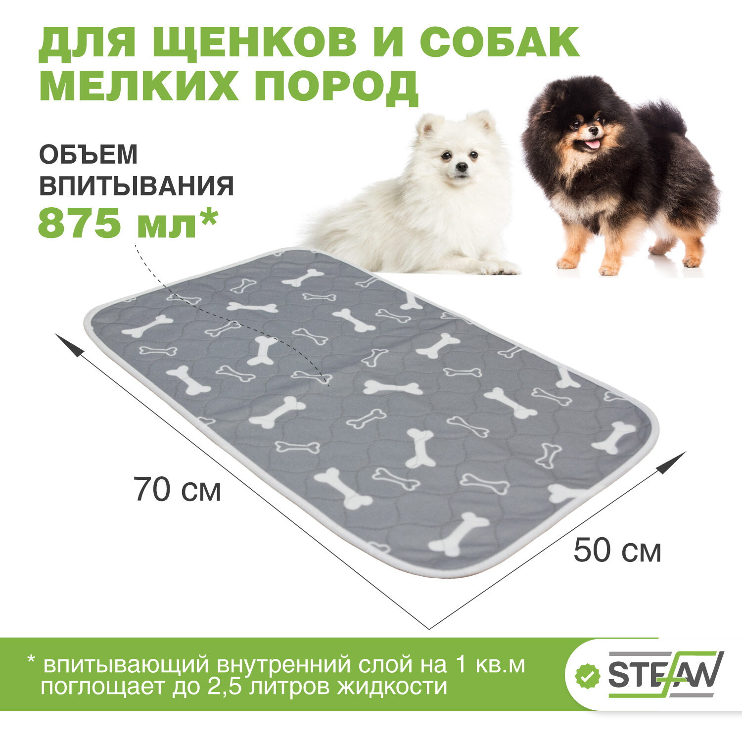 Купить Пелёнка-туалет STEFAN(Штефан), премиум, впитывающая многоразовая для животных, серый, 50х70см, PT50701