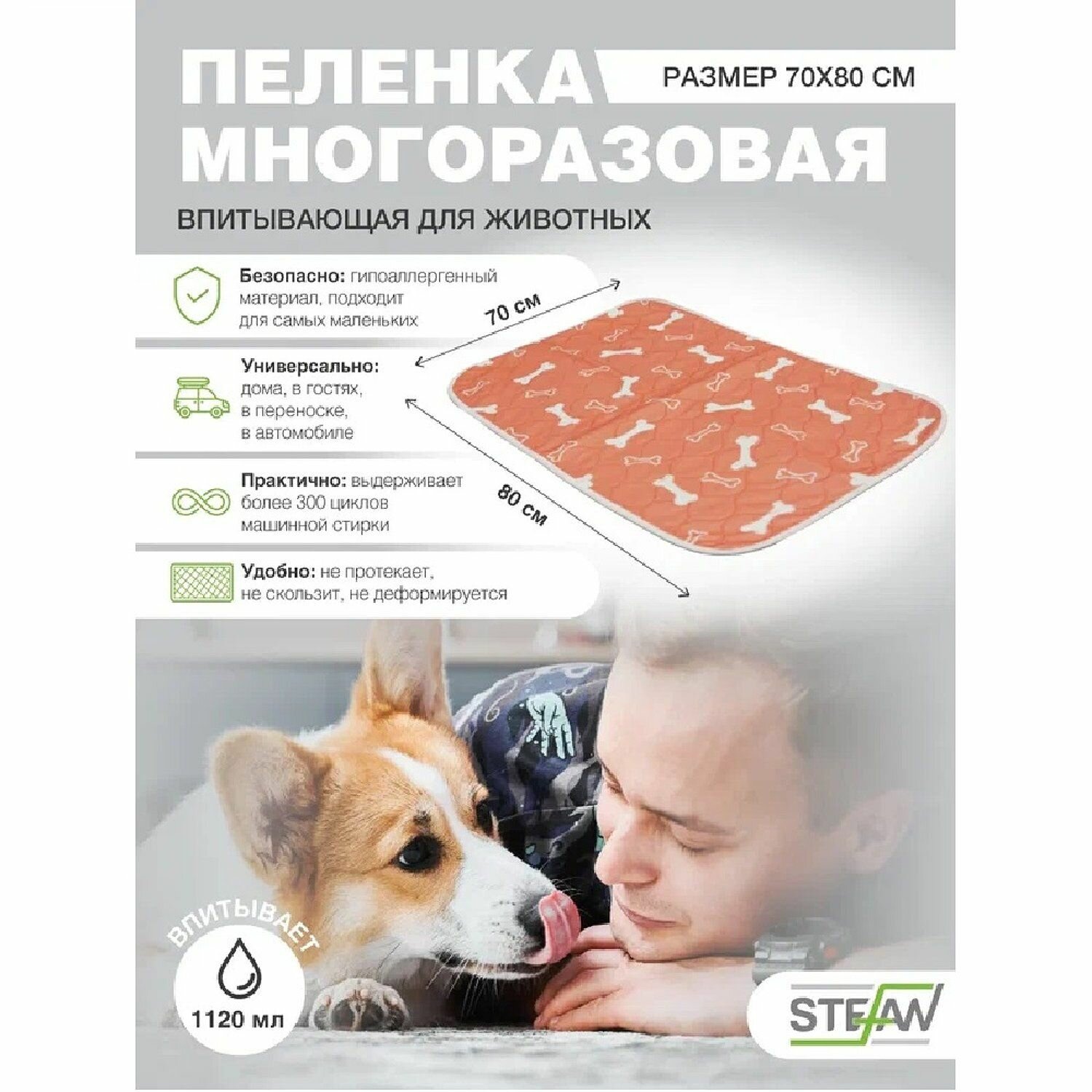 Купить [17115] Пелёнка впитывающая многоразовая для животных STEFAN, оранжевый, 70х80см, PT70805, 17115