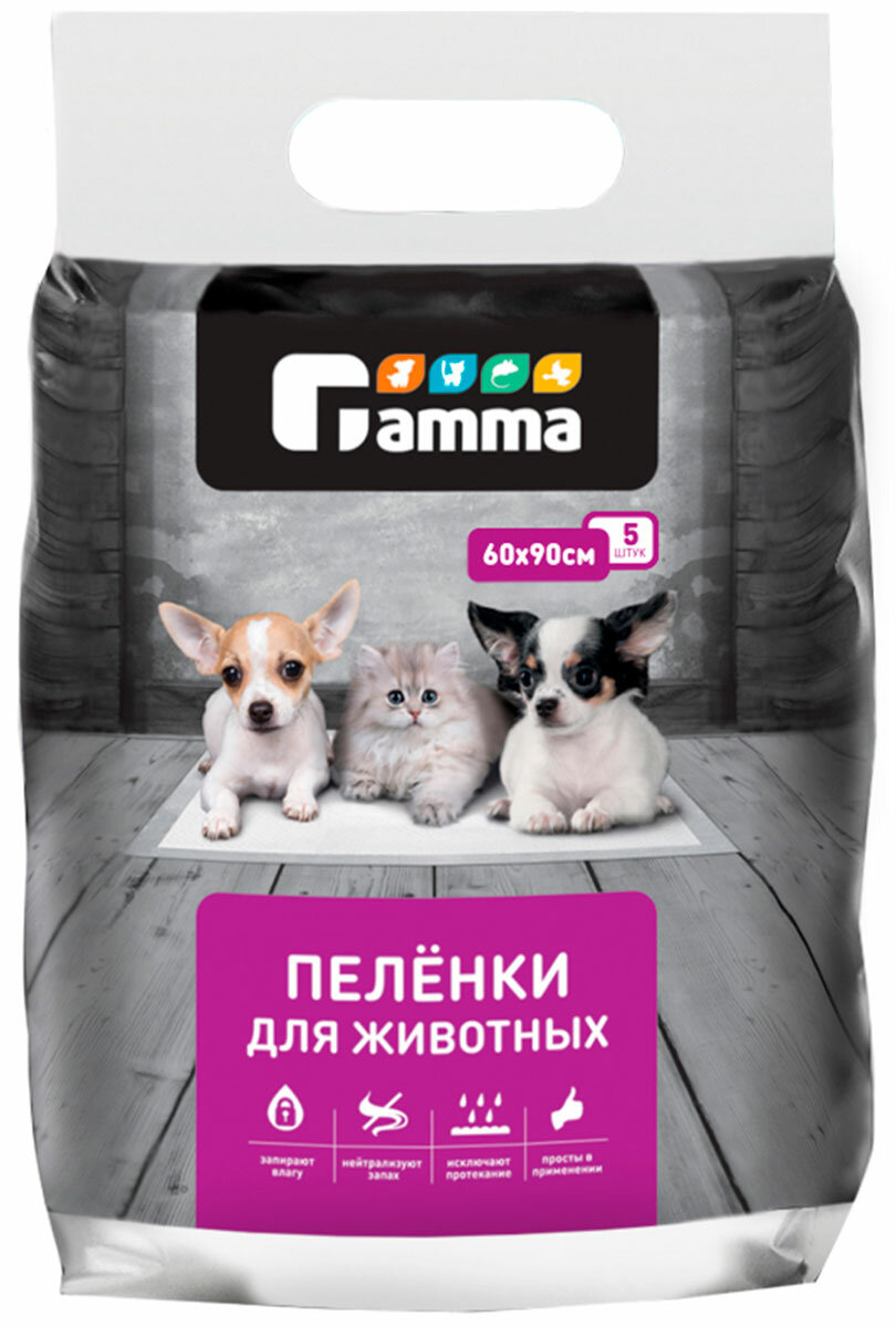 Купить Пеленки впитывающие для животных Gamma 60 х 90 см уп. 5 шт