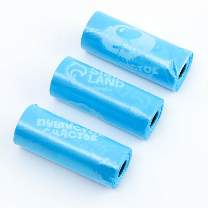 Купить Пакеты для уборки за собаками с печатью, 3 рулона по 15 пакетов, голубой, 2 штуки