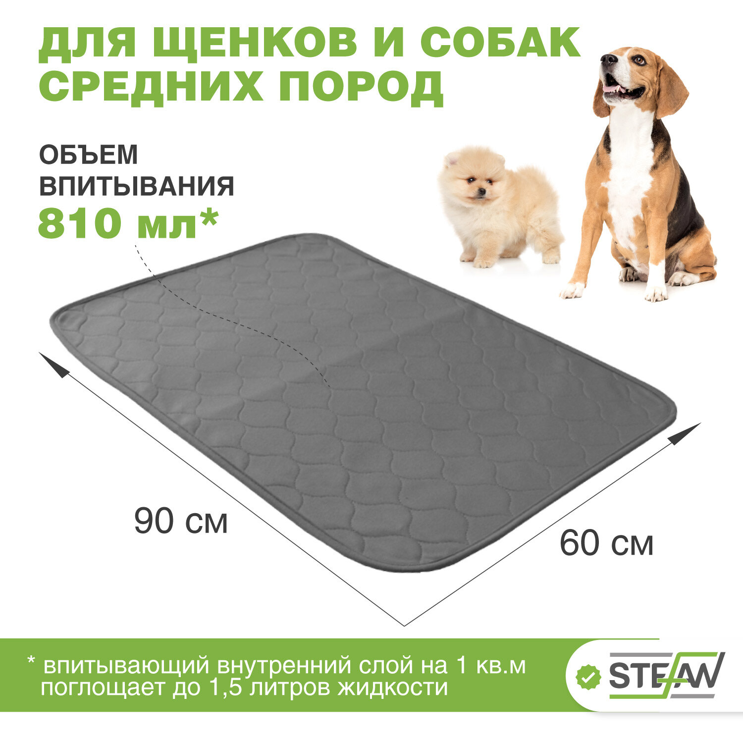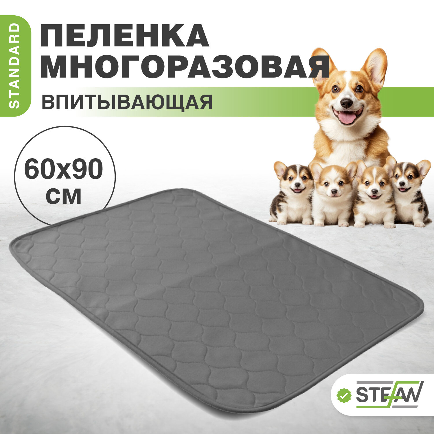Пелёнка многоразовая впитывающая для собак STEFAN (Штефан), премиум (коврик, подстилка), для животных, серая 40х60см, WP-40601