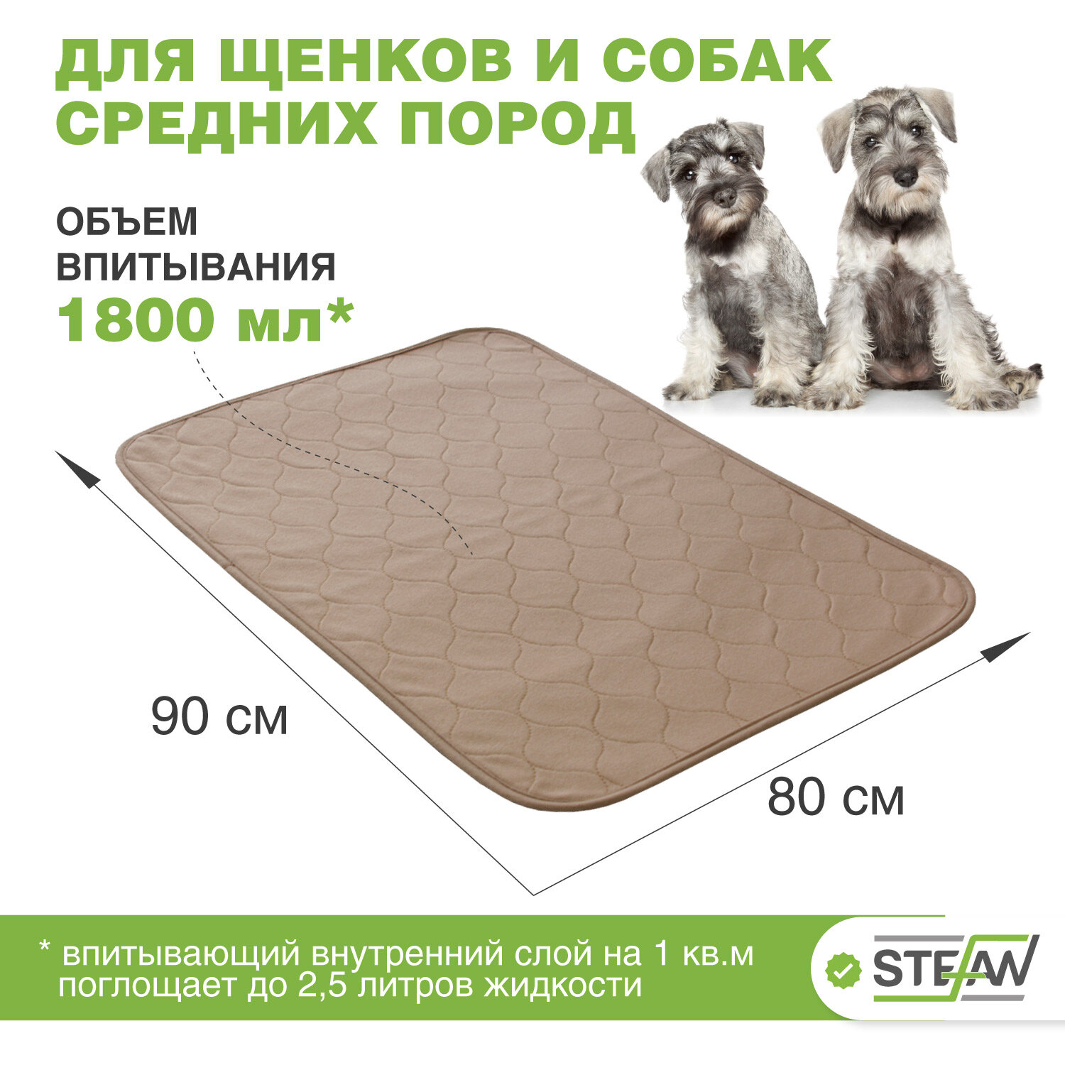Пелёнка STEFAN (Штефан), ПРЕМИУМ, впитывающая для собак, многоразовая для животных, коричневая 80х120см, WP-801203