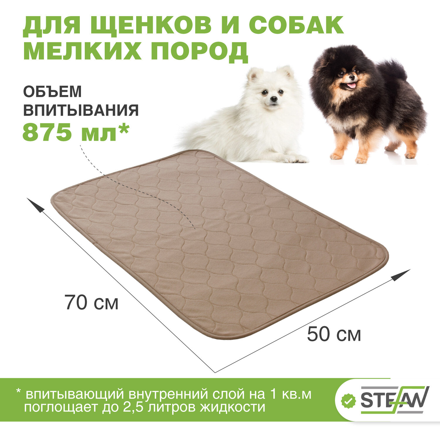 СохранитьПелёнка STEFAN (Штефан), премиум, впитывающая (коврик, подстилка) для собак, многоразовая для животных, коричневая однотонная 50х70см, WP-50703 интересное:
