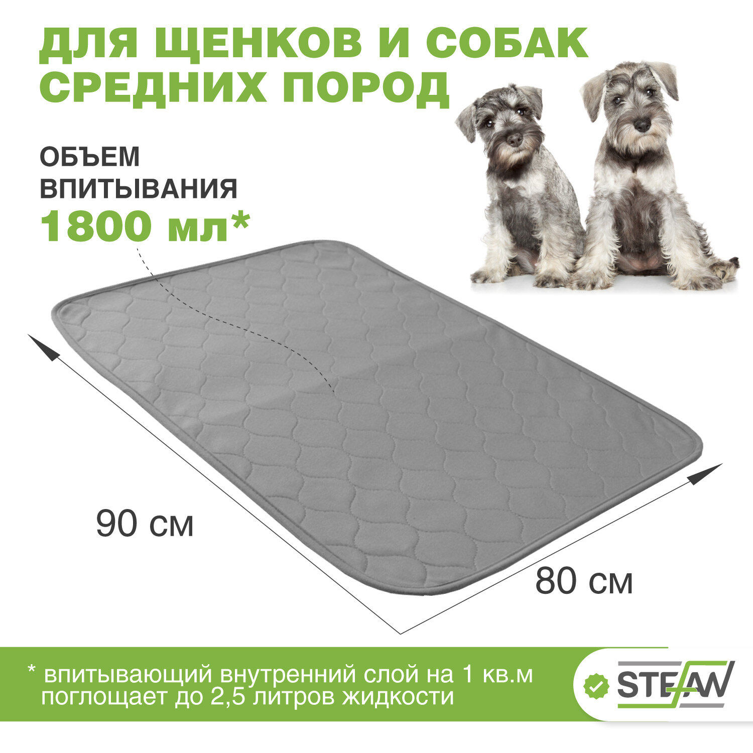 Купить Пелёнка STEFAN (Штефан), премиум, впитывающая (коврик, подстилка) для собак, многоразовая для животных, серая однотонная 80х90см, WP-80901