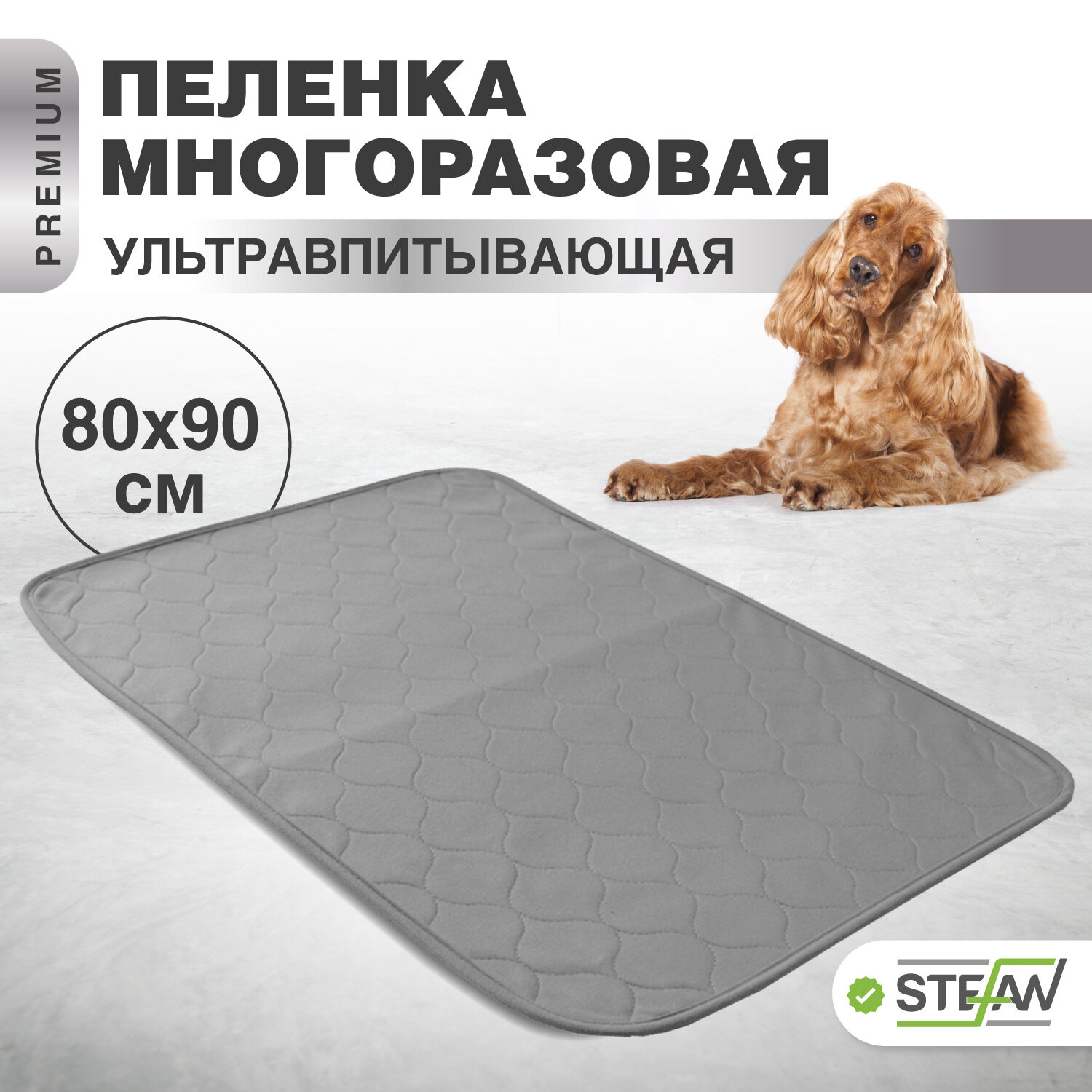 Пелёнка STEFAN (Штефан), ПРЕМИУМ, впитывающая для собак, многоразовая для животных, серая 80х120см, WP-801201