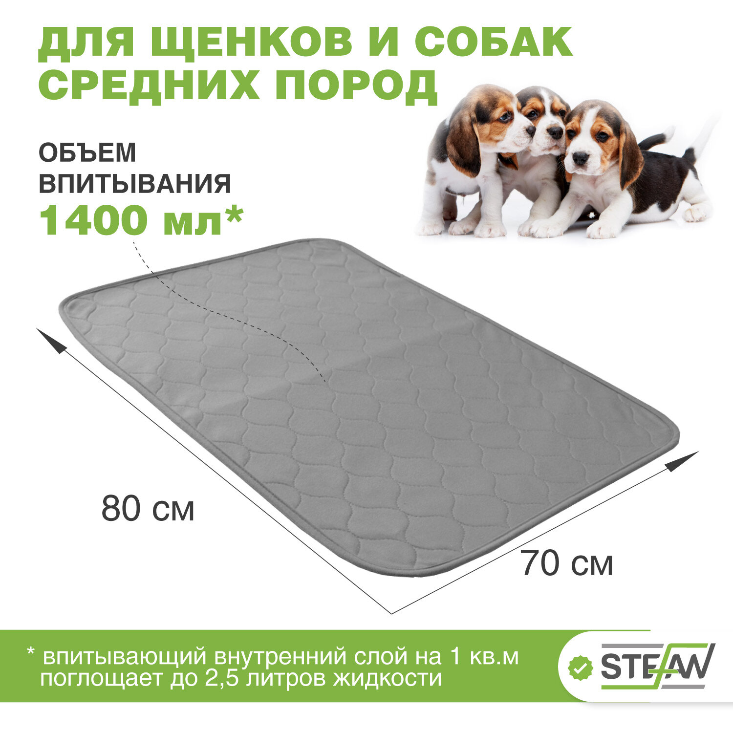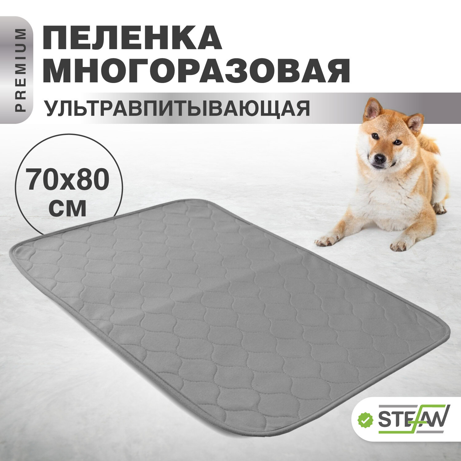 Пелёнка STEFAN (Штефан), ПРЕМИУМ, впитывающая для собак, многоразовая для животных, серая 80х120см, WP-801201