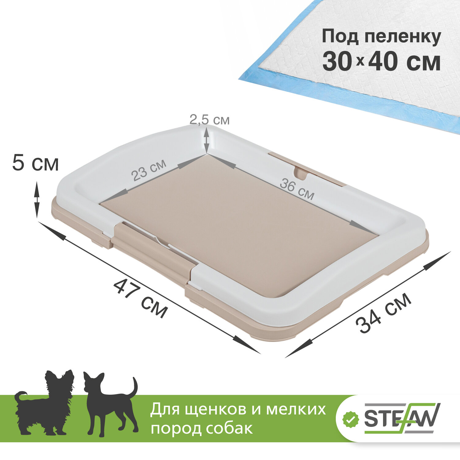 Лоток для собак под пеленку STEFAN (Штефан) для мелких пород (S) размер 47х34x5,5, бежевый, BP1023B